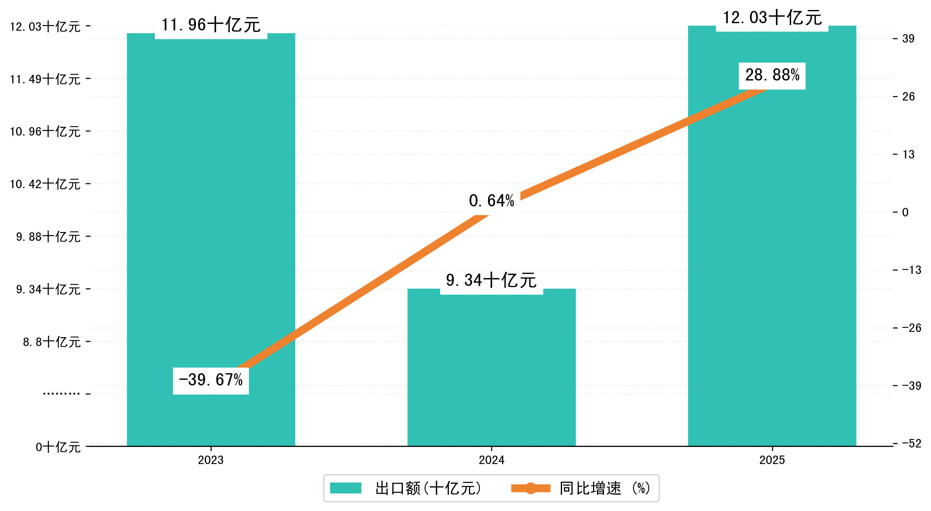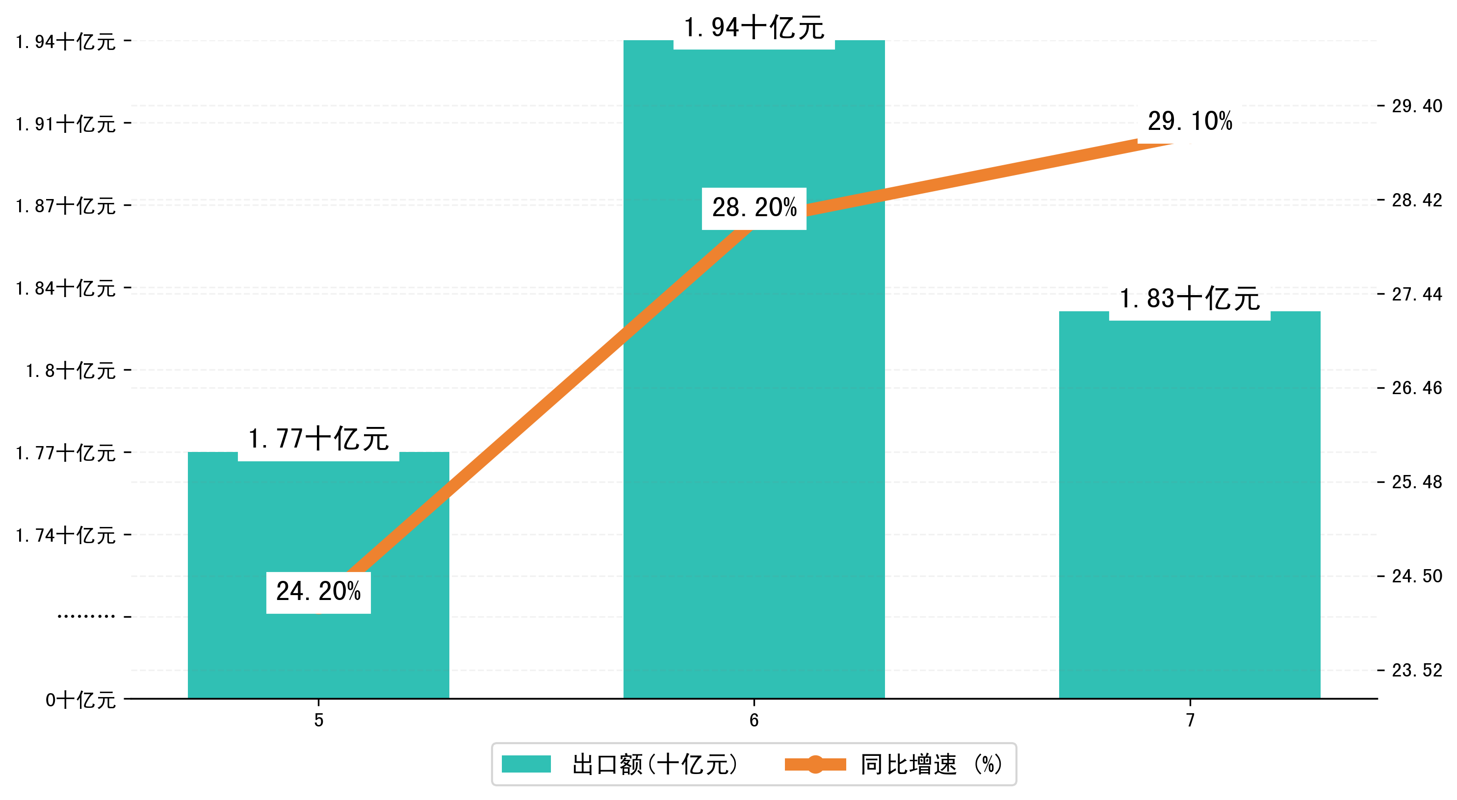 以人民币计,2025年1-7月抚州市出口额为120,3373.5064万元,相比上年同期增加了26,9652.013万元,同比增加了29.10%。