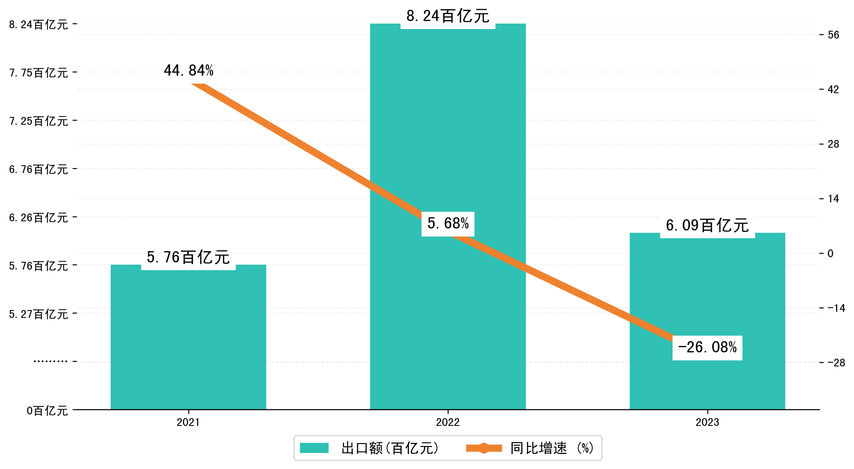 以美元计,2023年1-12月赣州市出口额为86,4866.1358万美元,相比上年同期减少了36,1633.6444万美元,同比减少-20.40%。