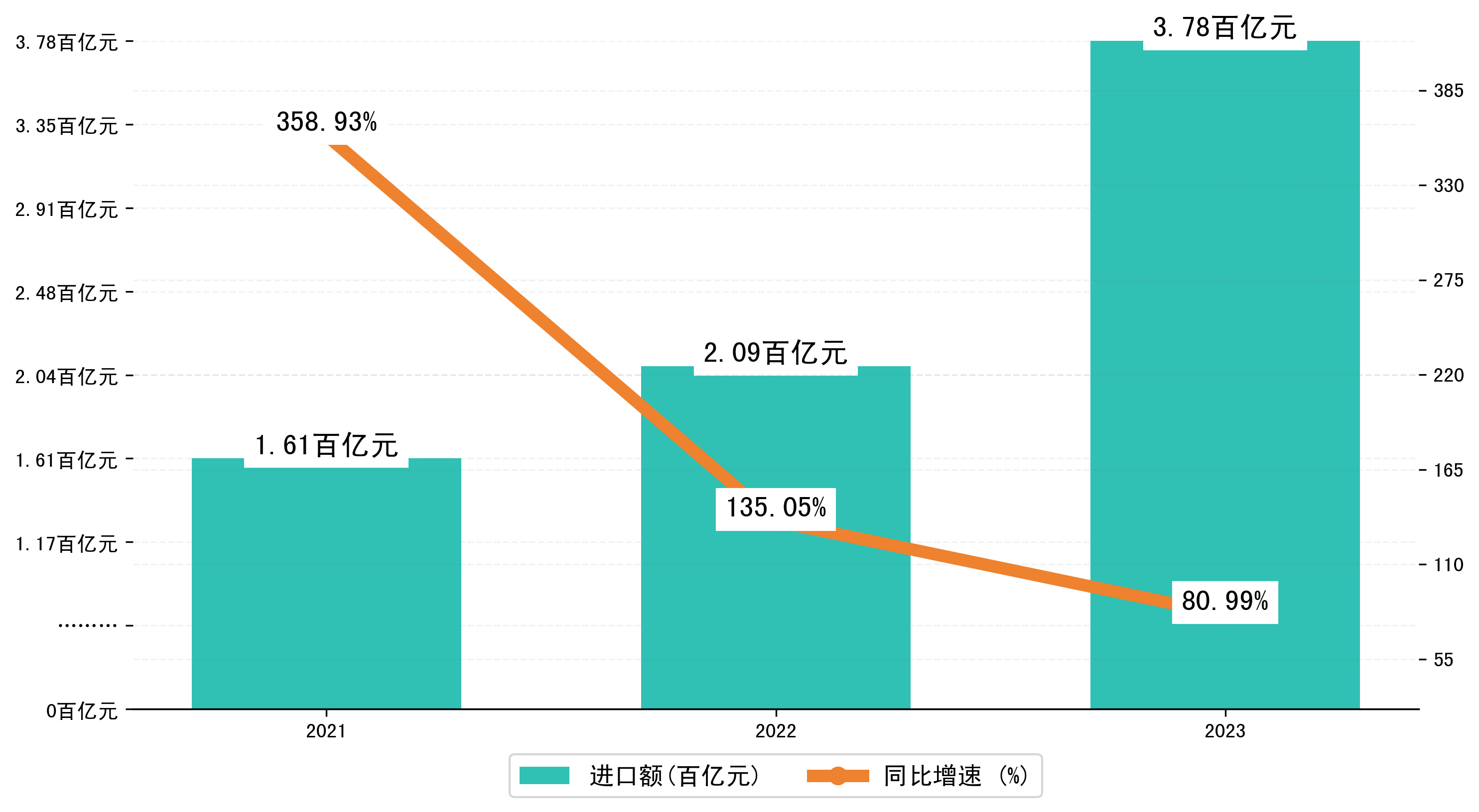 以人民币计,2023年1-12月赣州市进口额为378,2325.6989万元,相比上年同期增加了169,2493.2728万元,同比增加了105.50%。