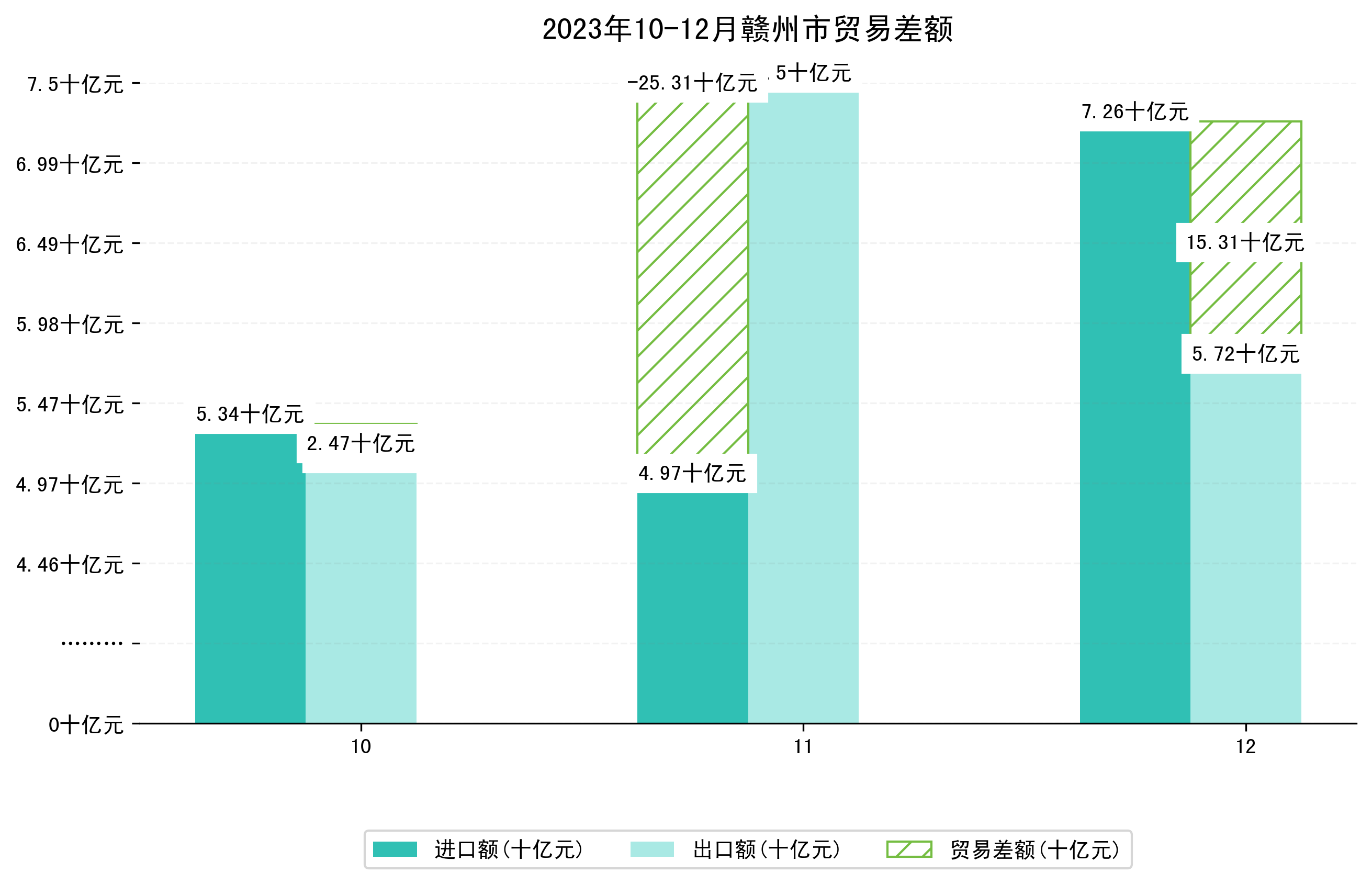 2023年12月赣州市进出口总额及进出口差额统计分析