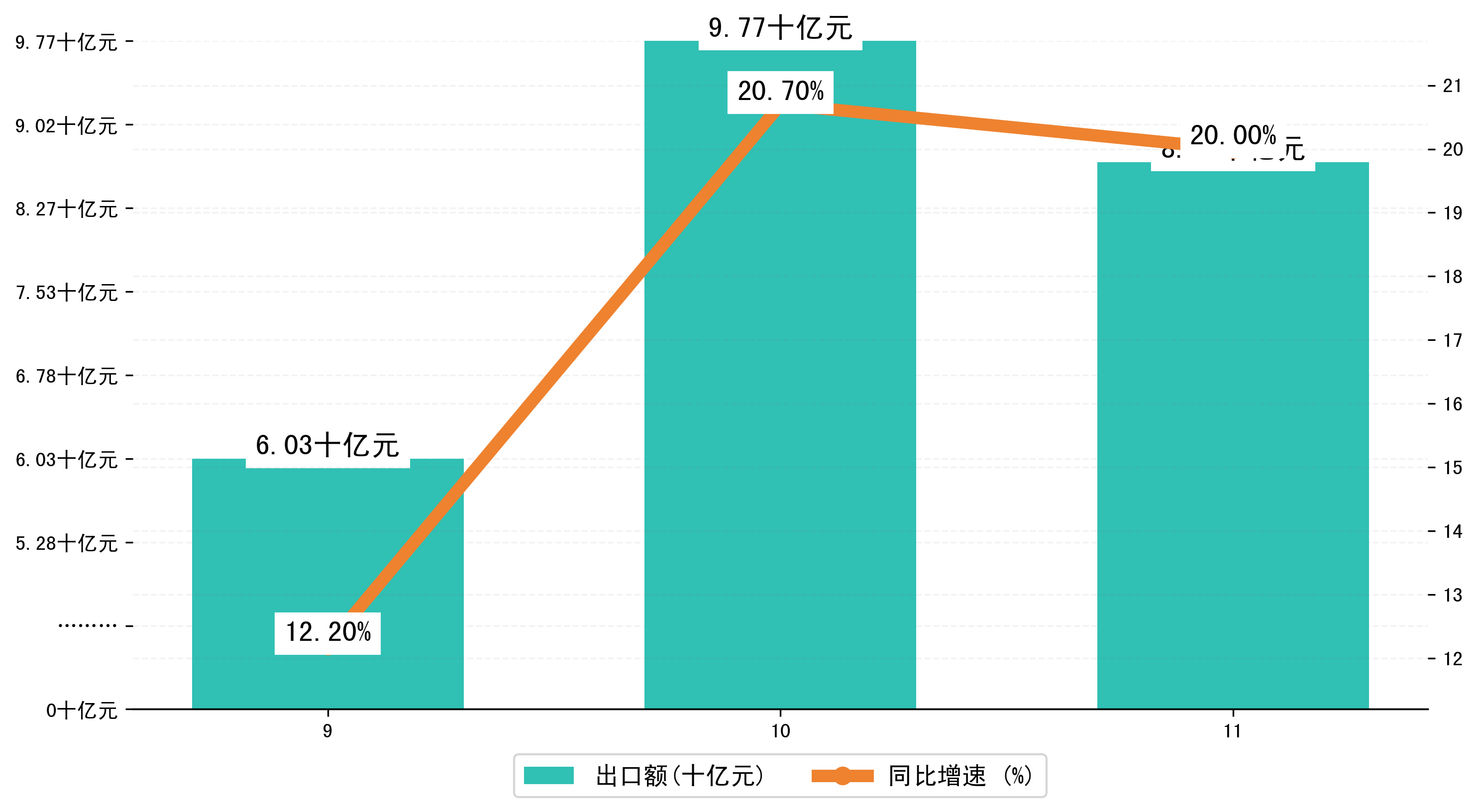 以人民币计,2024年1-11月赣州市出口额为662,4861.5363万元,相比上年同期增加了109,7090.7068万元,同比增加了20.00%。