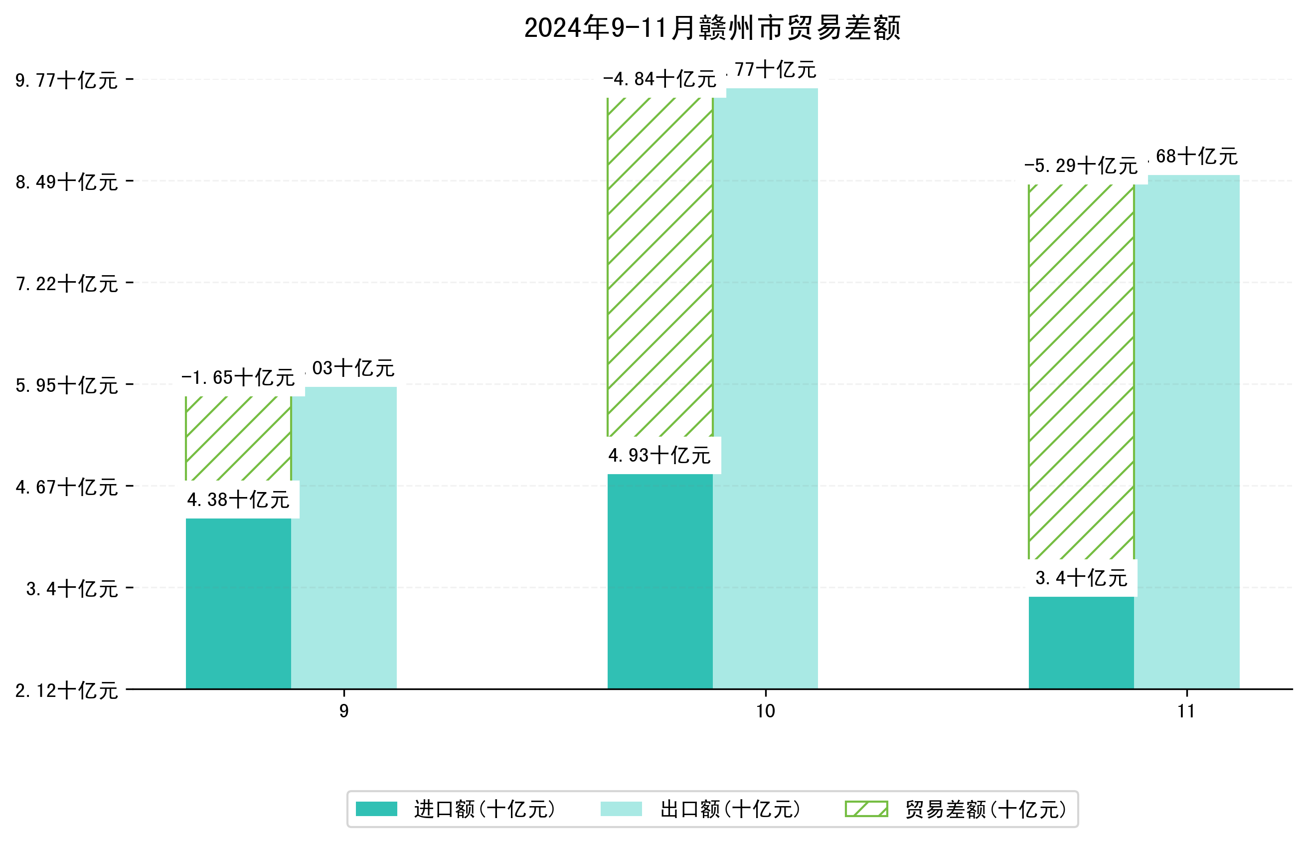 2024年11月赣州市进出口总额及进出口差额统计分析