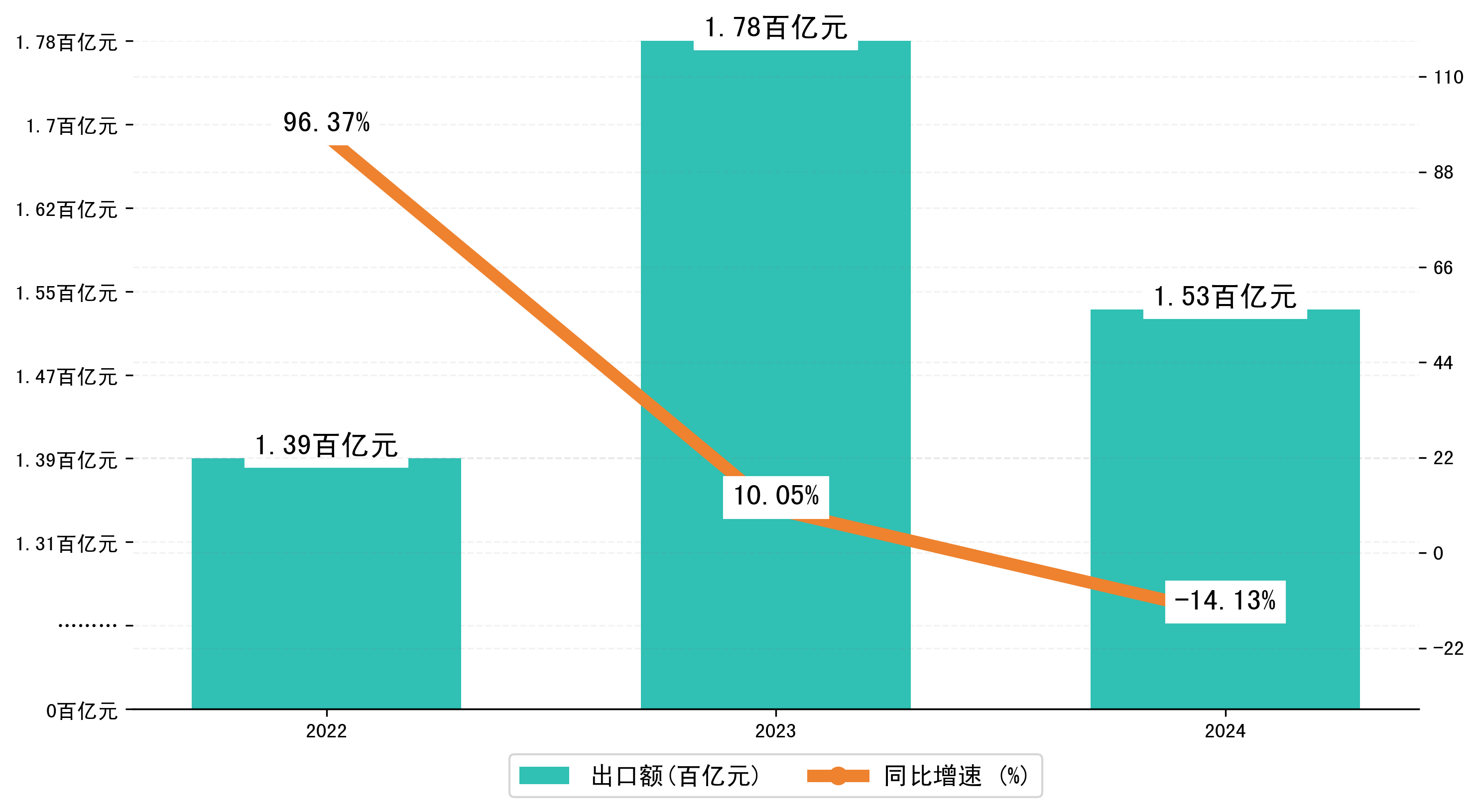 以美元计,2024年1-3月赣州市出口额为21,5277.7402万美元,相比上年同期减少了4,3855.1608万美元,同比增加13.80%。