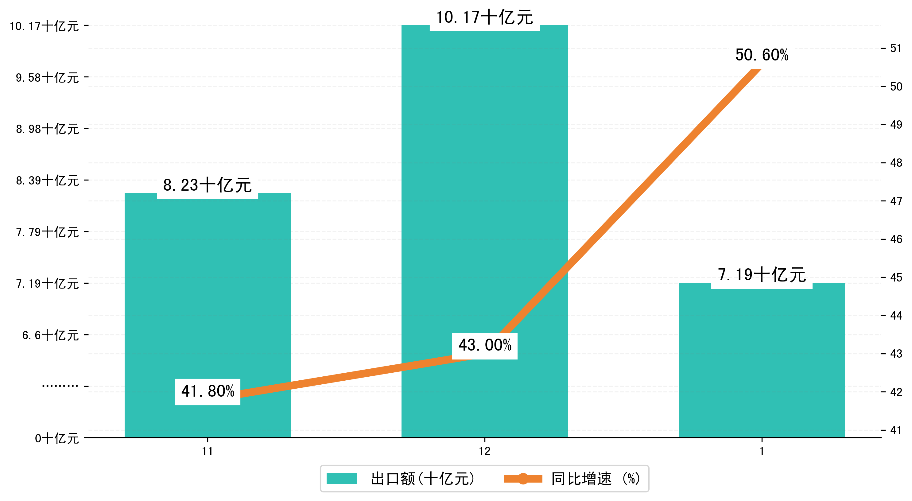 以人民币计,2023年1-1月赣州市出口额为71,9194.4161万元,相比上年同期增加了21,6101.1017万元,同比增加了50.60%。