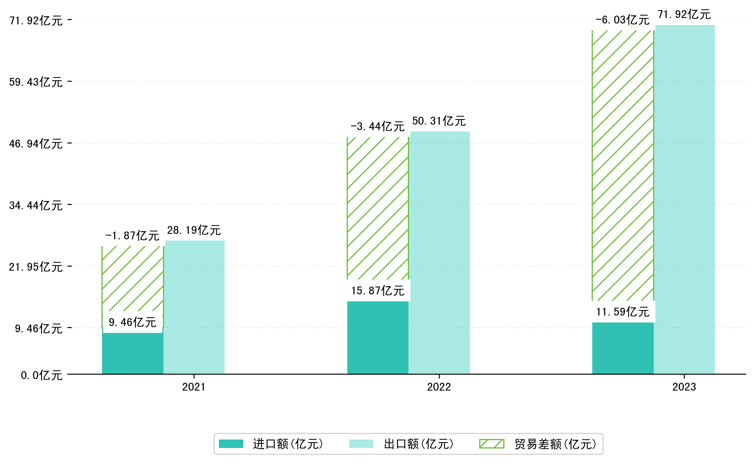 以人民币计,2023年1月赣州市贸易差额为60,3248,4270万元(贸易顺差),相比上月减少了24,9225,5956万元,即3,4414,8825万美元;相比上年同期增加了25,8903,5887万元,同比增加75.19%。