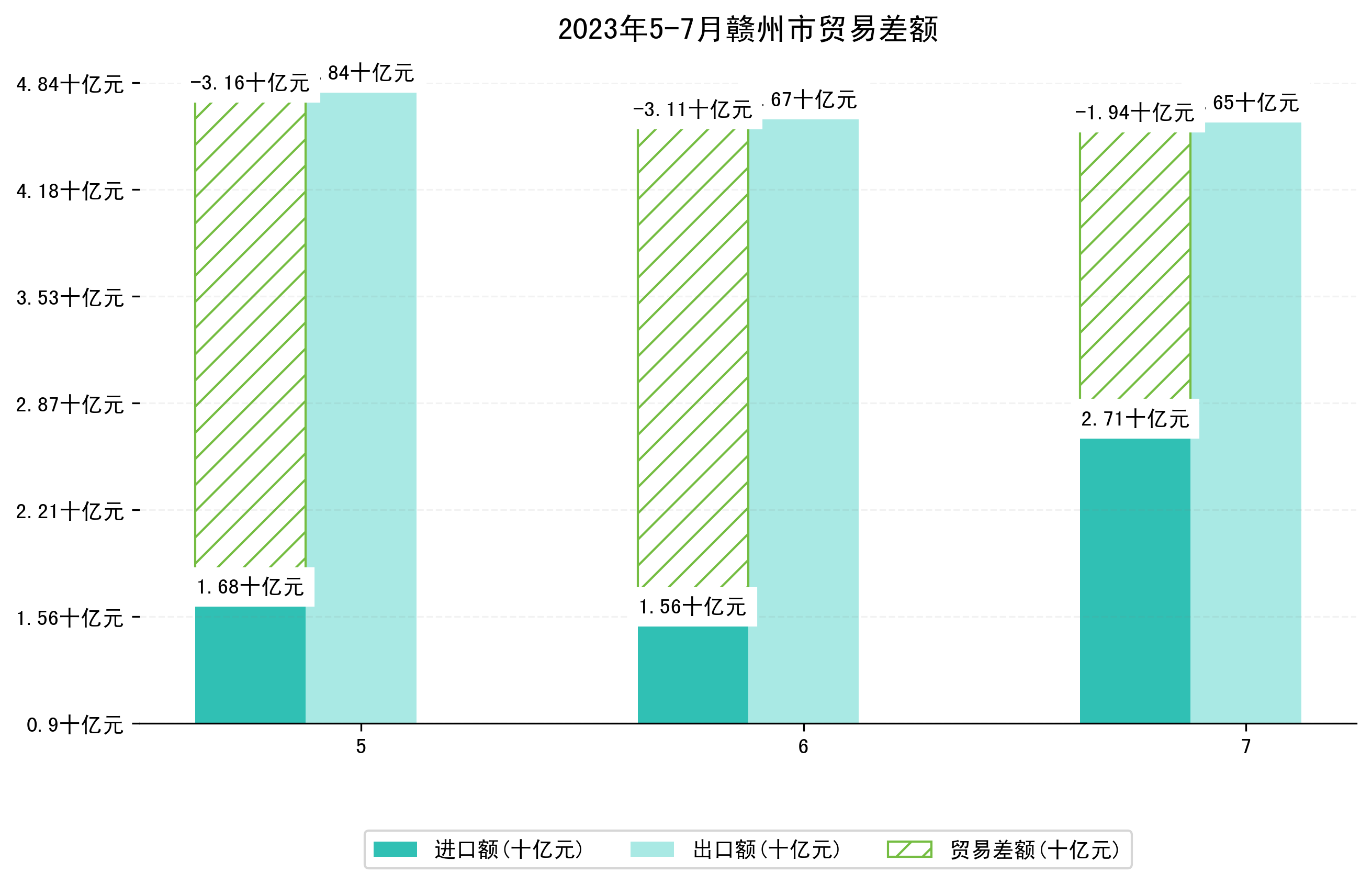 (图四:2023年5-7月赣州市贸易差额)