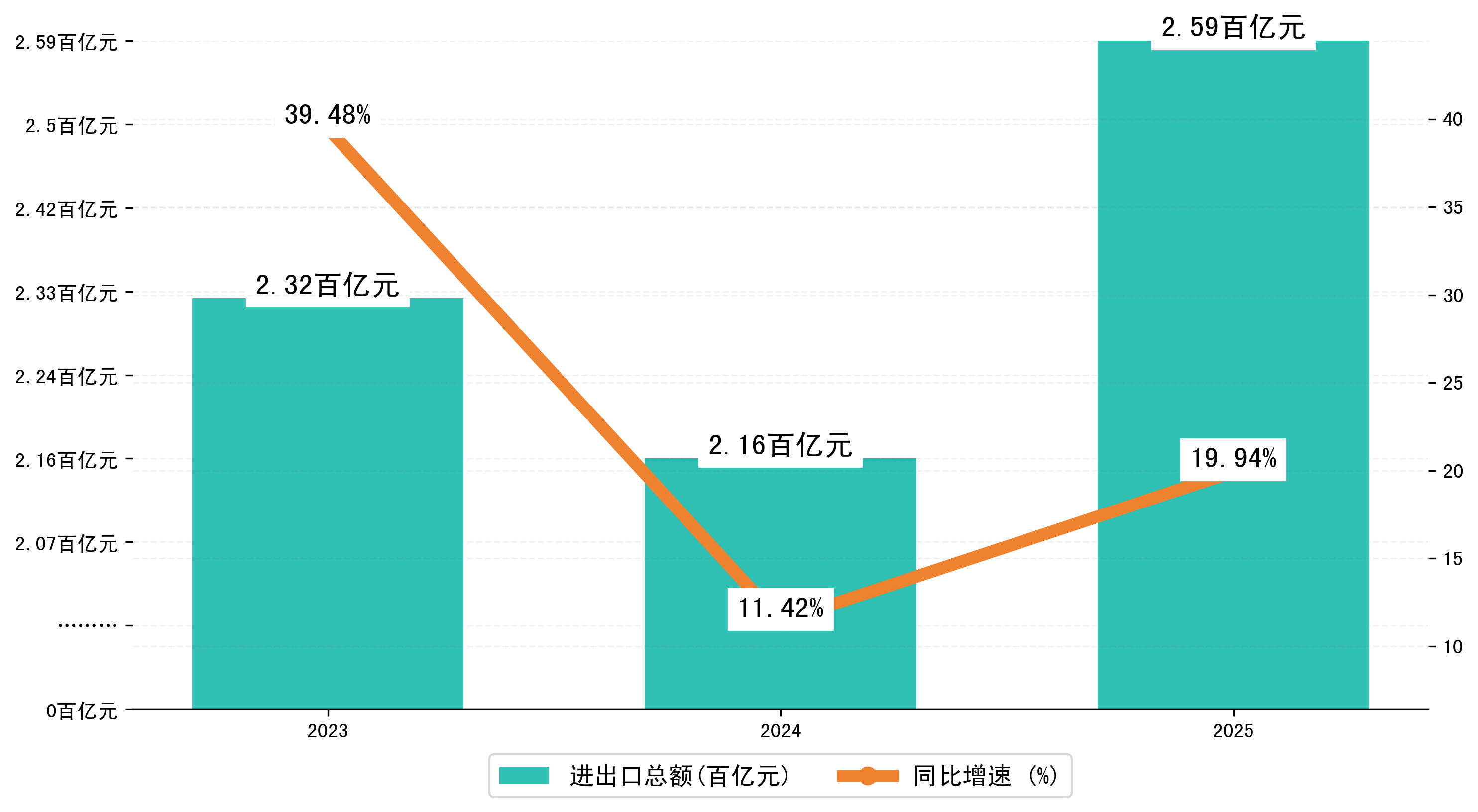 以人民币计,2025年1-3月赣州市进出口总额为258,9093.5508万元,相比上年同期增加了43,0499.1228万元,同比增加了19.90%。