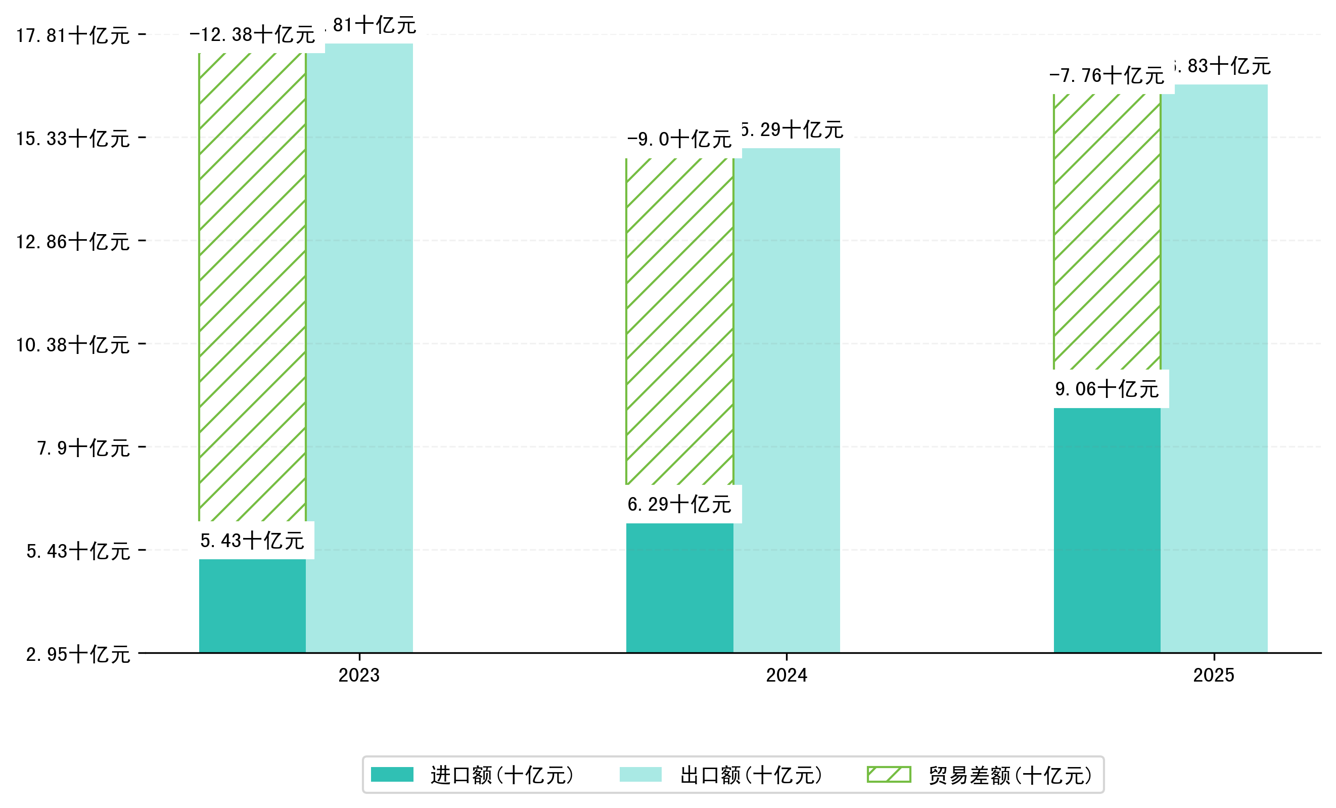以人民币计,2025年3月赣州市贸易差额为16,1755,0584万元(贸易顺差),相比上月增加了7,2672,2155万元,即1,0112,1561万美元;相比上年同期减少了4,9347,0195万元,同比减少-23.38%。