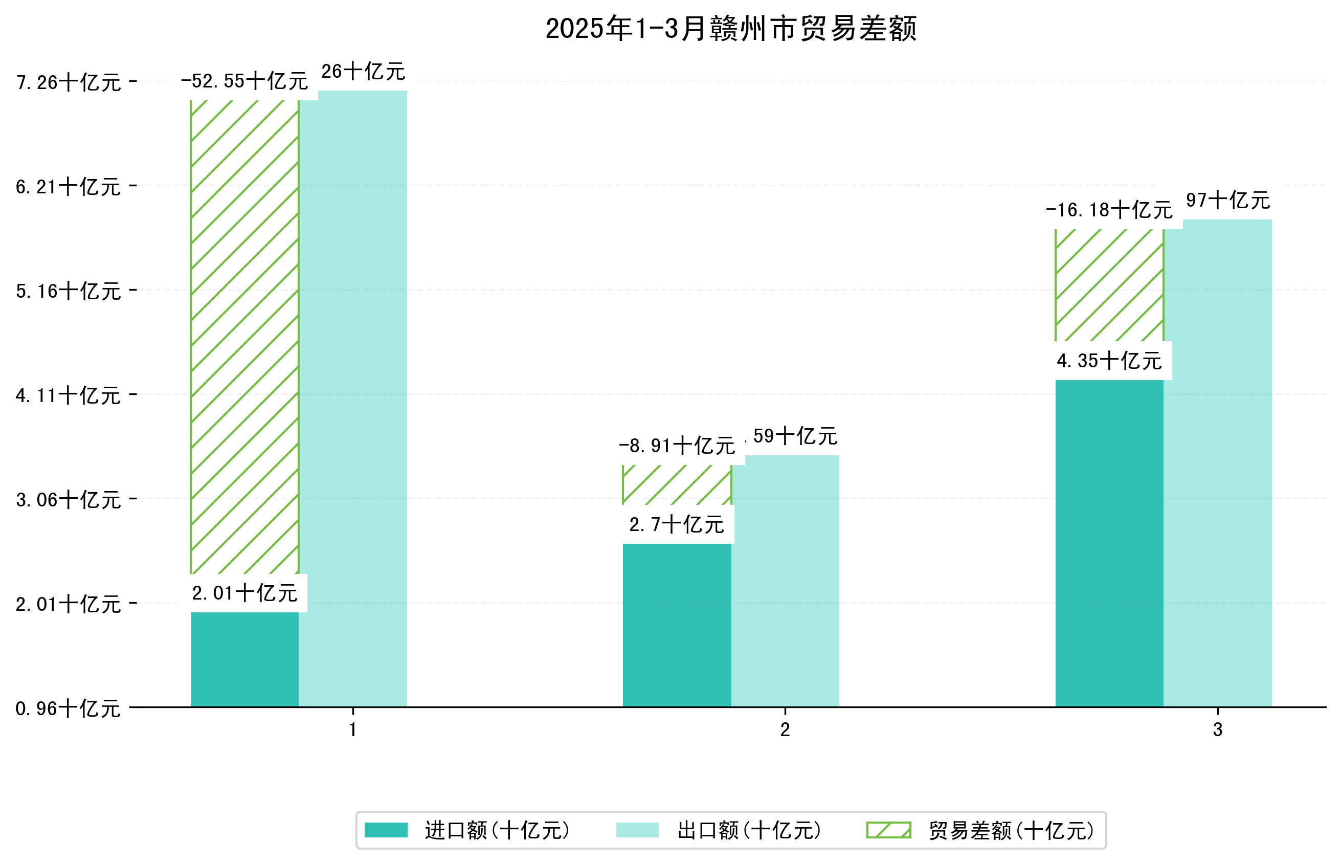 2025年3月赣州市进出口总额及进出口差额统计分析