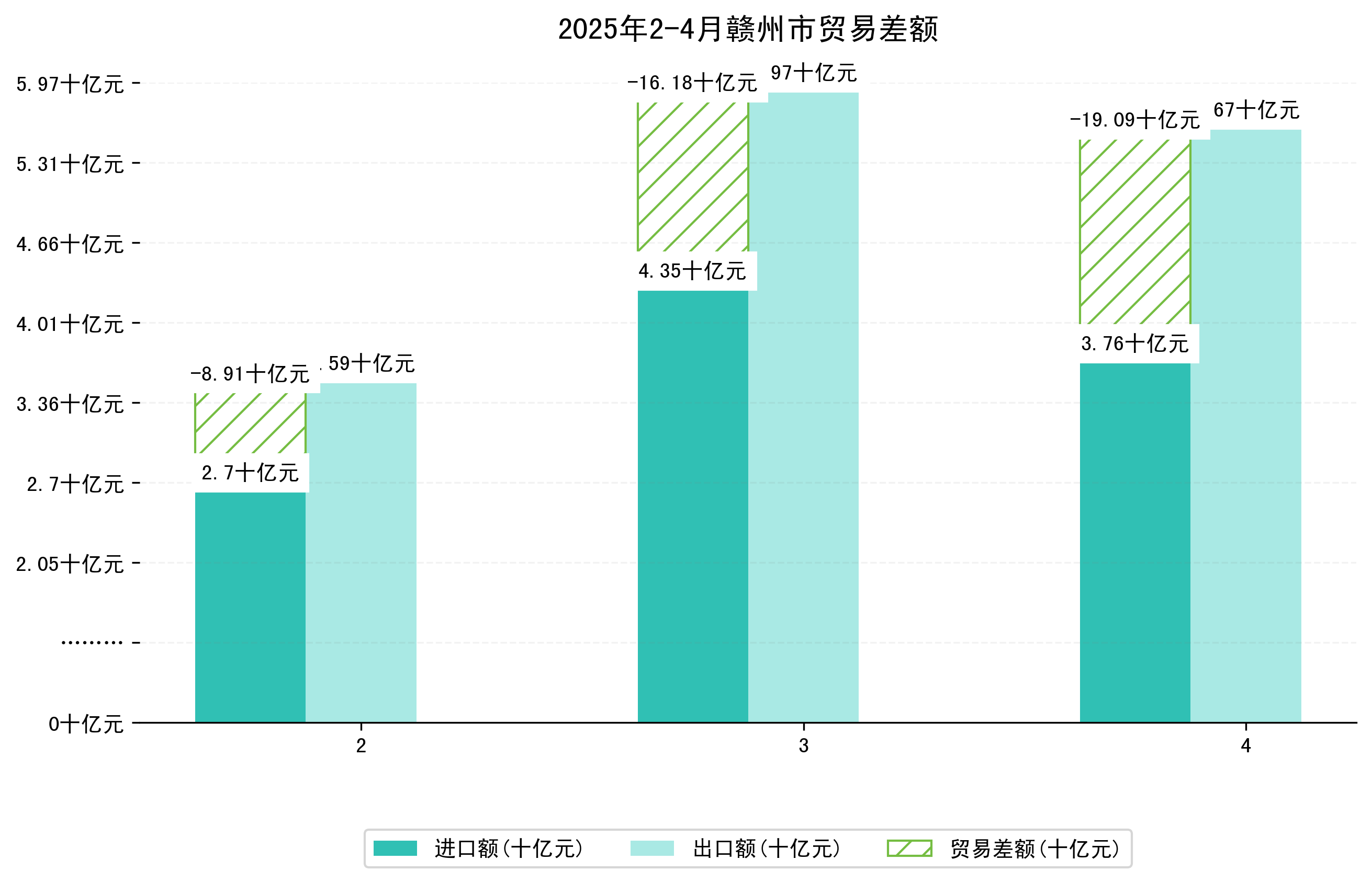 2025年4月赣州市进出口总额及进出口差额统计分析