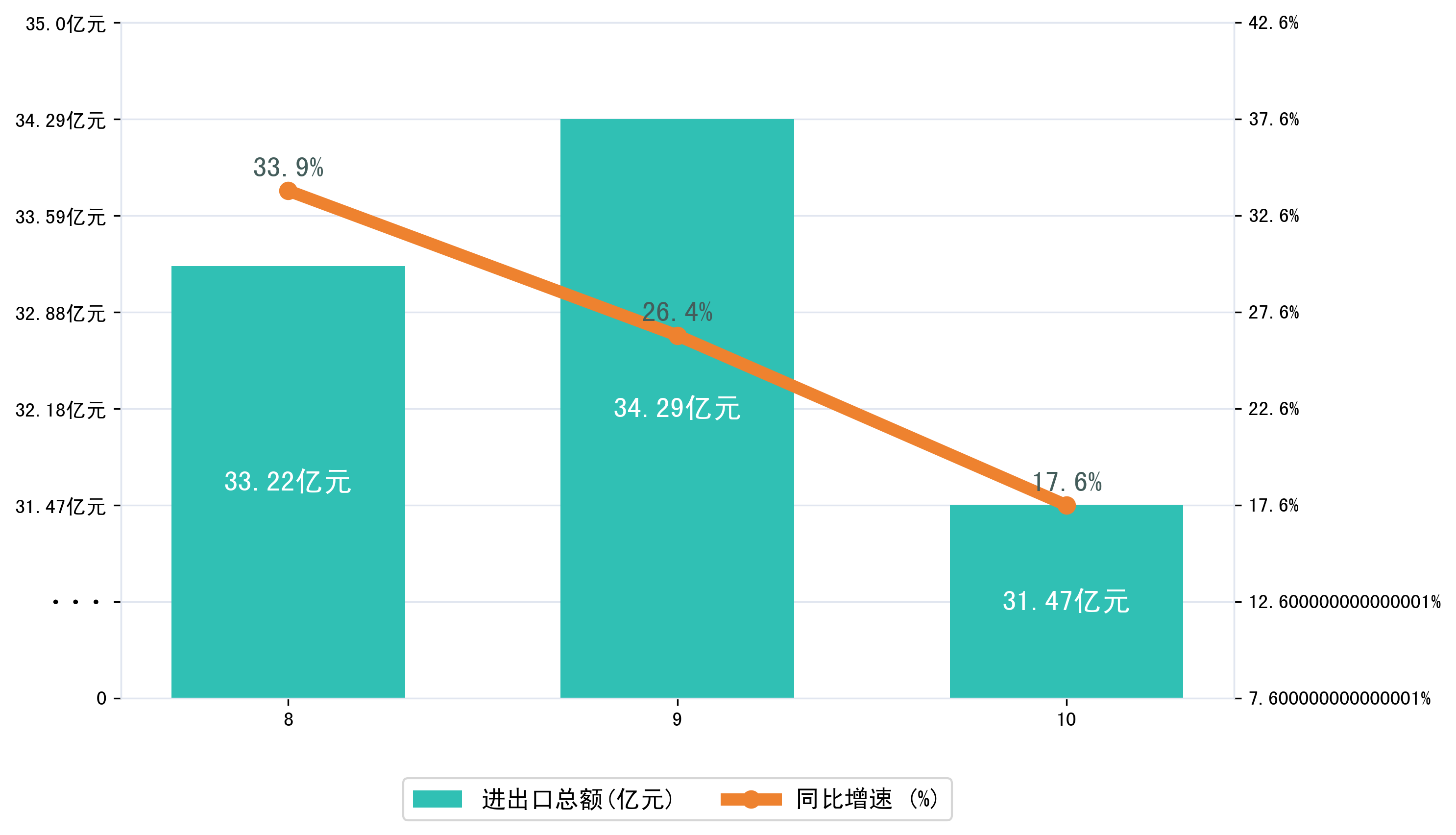 (图一:2025年8-10月荆州市进出口总额)