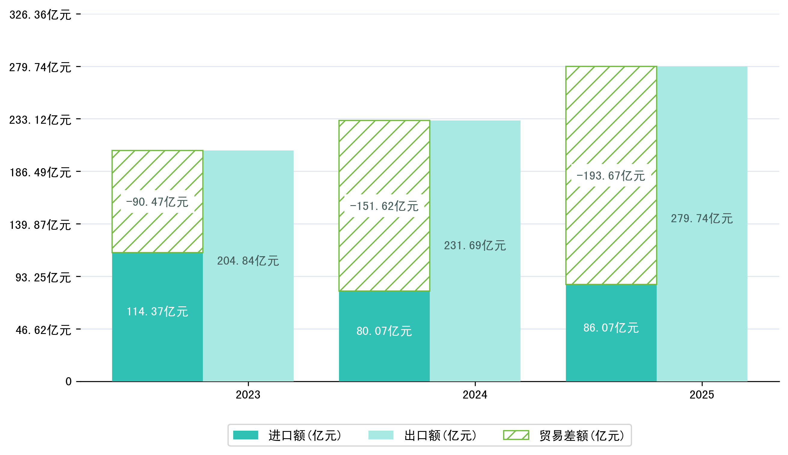 以人民币计,2025年1-10月荆州市贸易差额为193,6662,2464万元(贸易顺差),相比上年同期增加了42,0466,8811万元,同比增加27.73%。