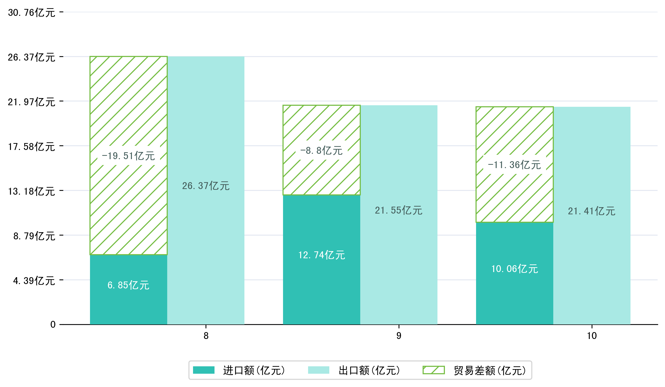 (图三:2025年8-10月荆州市进口额)