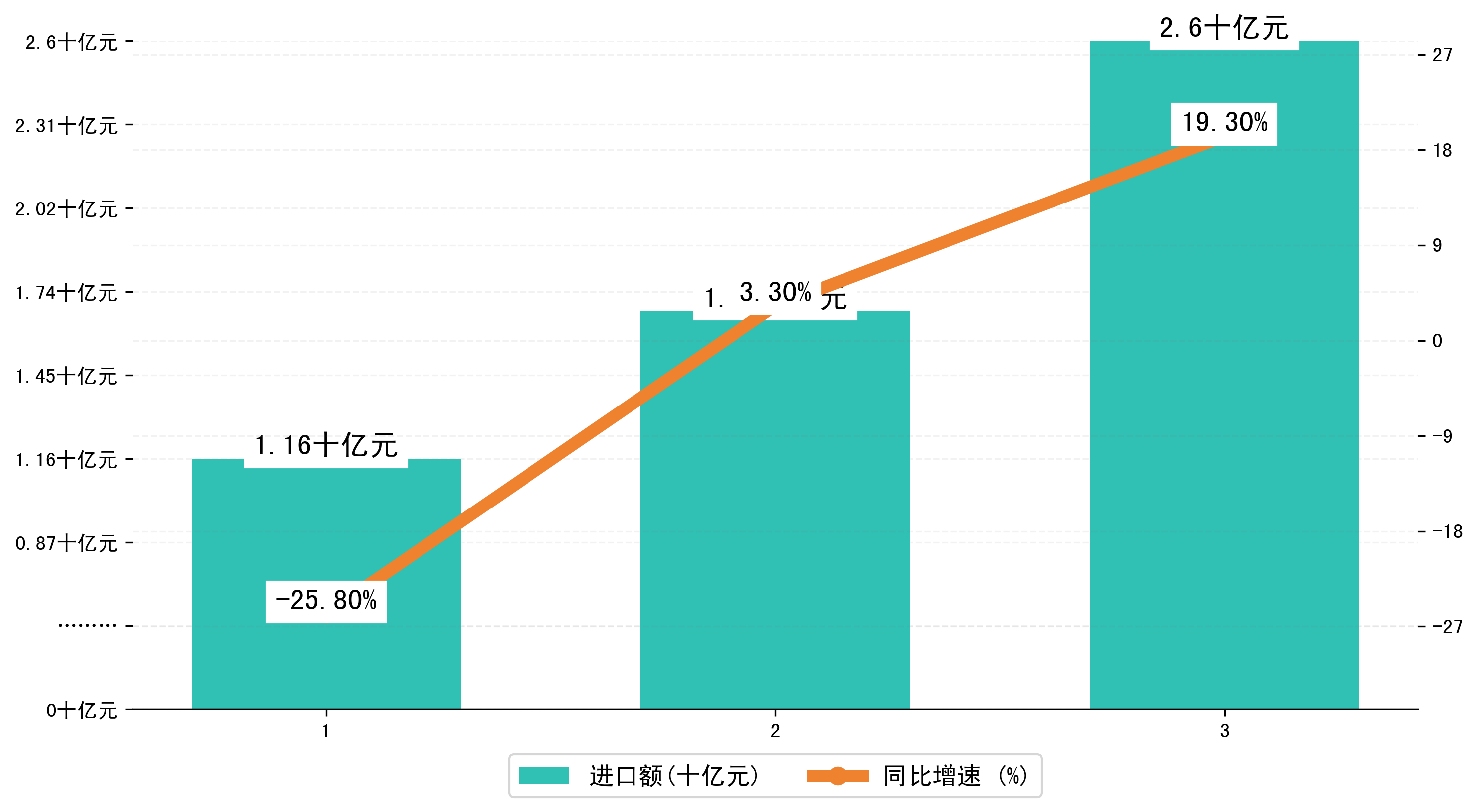 以人民币计,2023年1-3月赣州市进口额为54,2697.4696万元,相比上年同期增加了7,6249.4749万元,同比增加了19.30%。