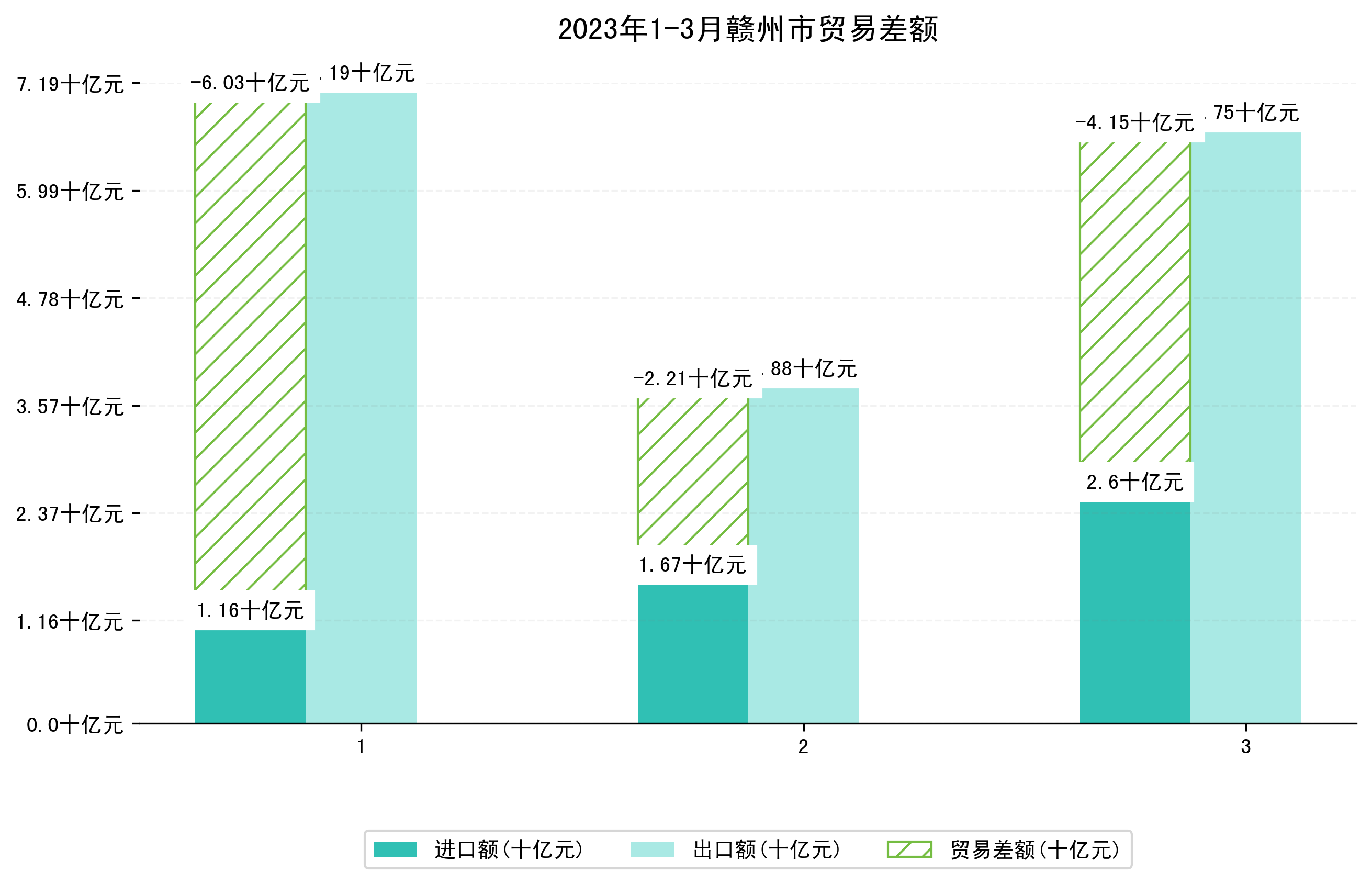 2023年3月赣州市进出口总额及进出口差额统计分析
