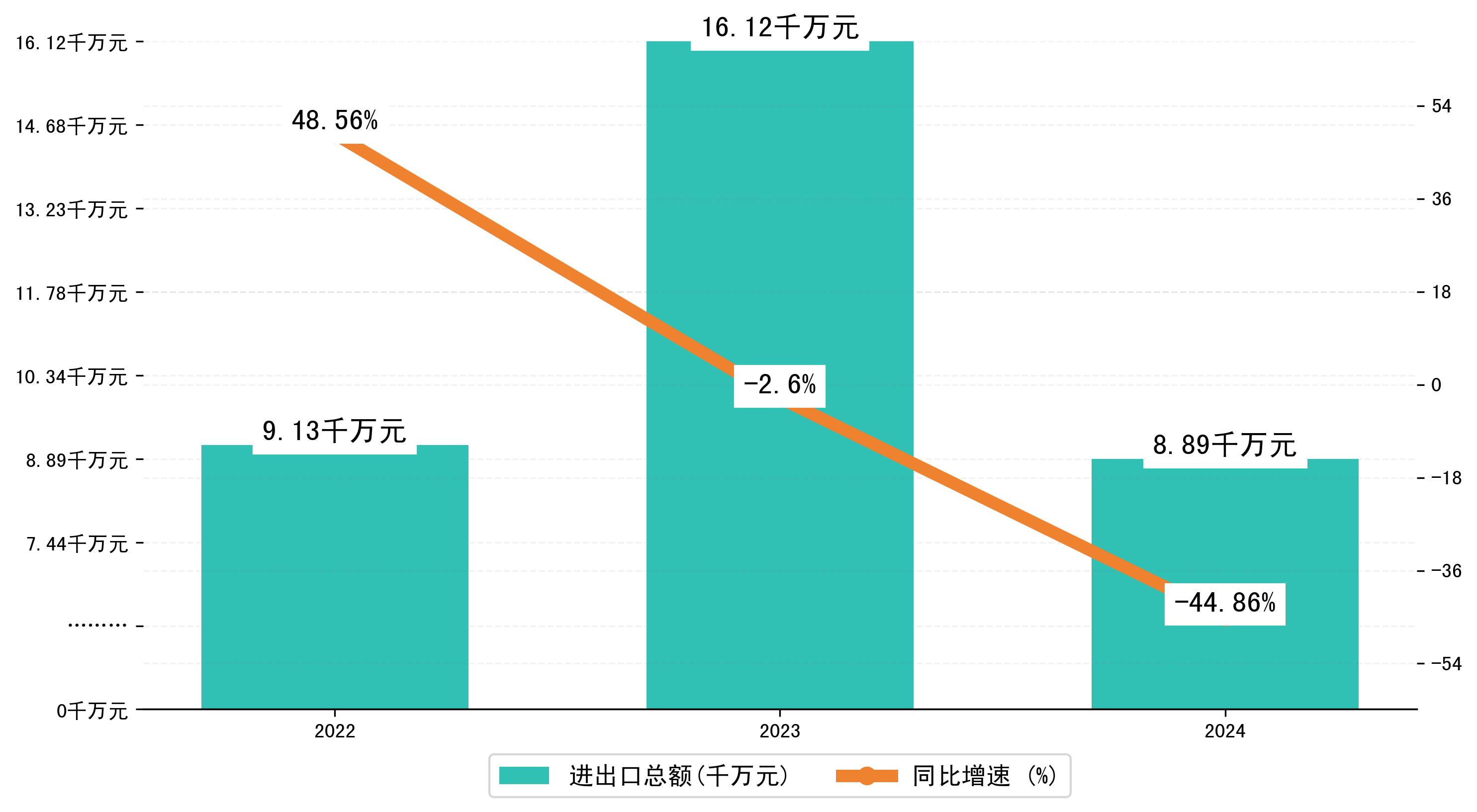 以人民币计,2024年1-4月广元市进出口总额为8891.4352万元,相比上年同期减少了7232.8772万元,同比减少了-44.90%。