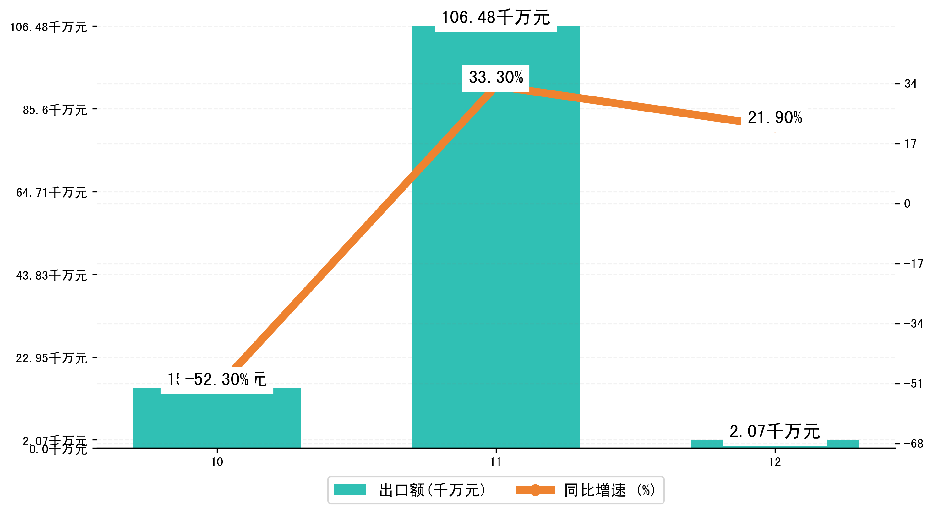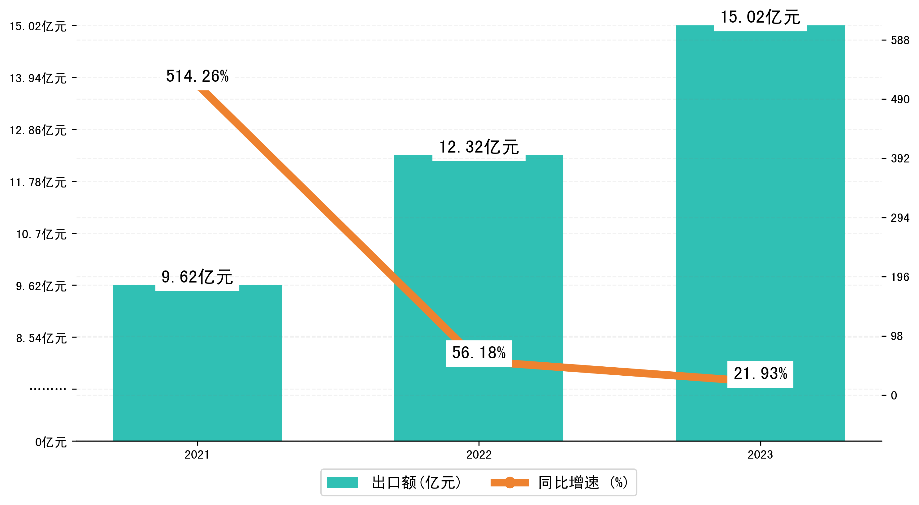以人民币计,2023年1-12月广元市出口额为15,0227.4107万元,相比上年同期增加了2,7018.9668万元,同比增加了21.90%。