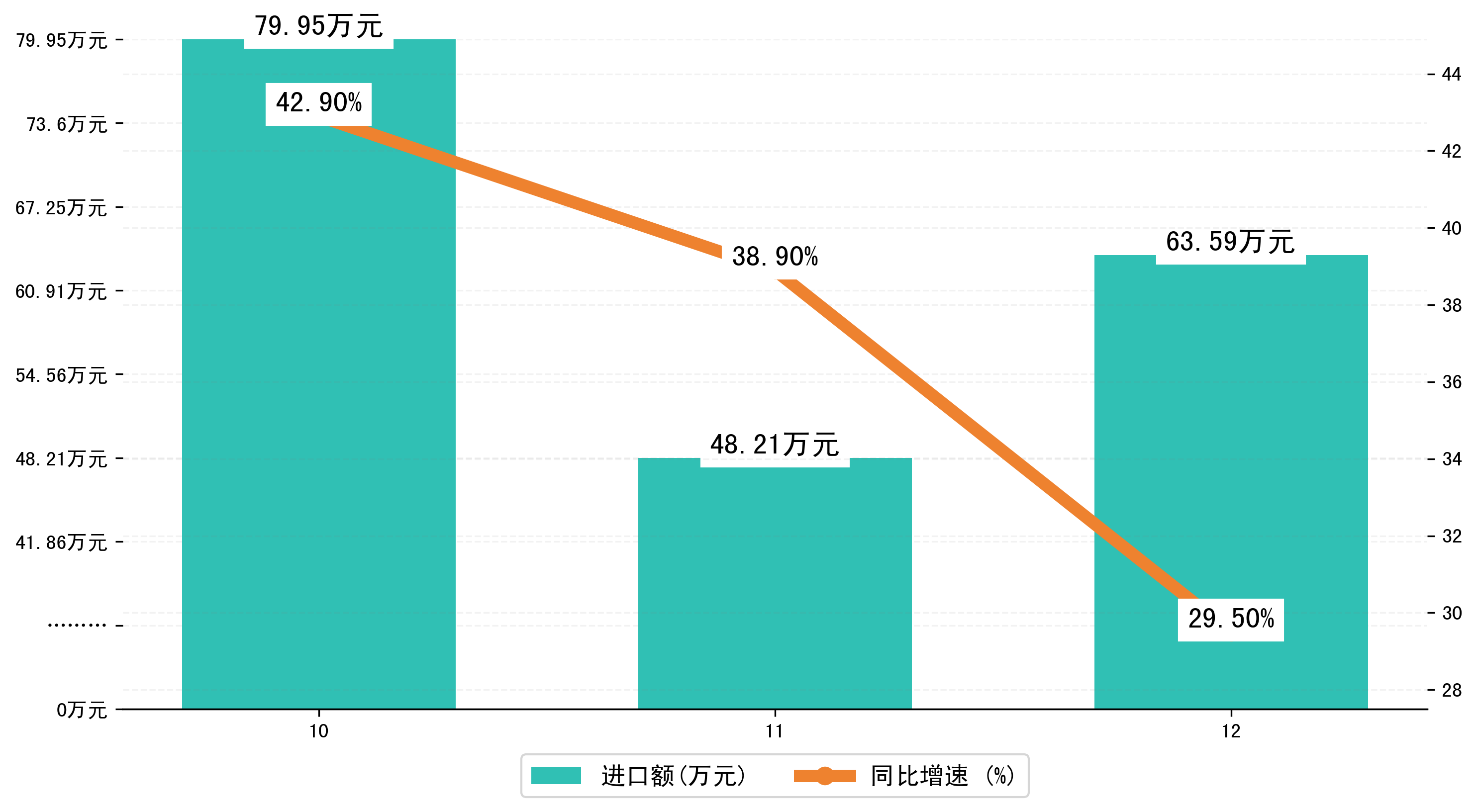 以人民币计,2023年12月广元市进口额为63.5922万元,相比上月增加了15.3802万元;相比上年同期减少了1693.6169万元,同比增加了29.50%。