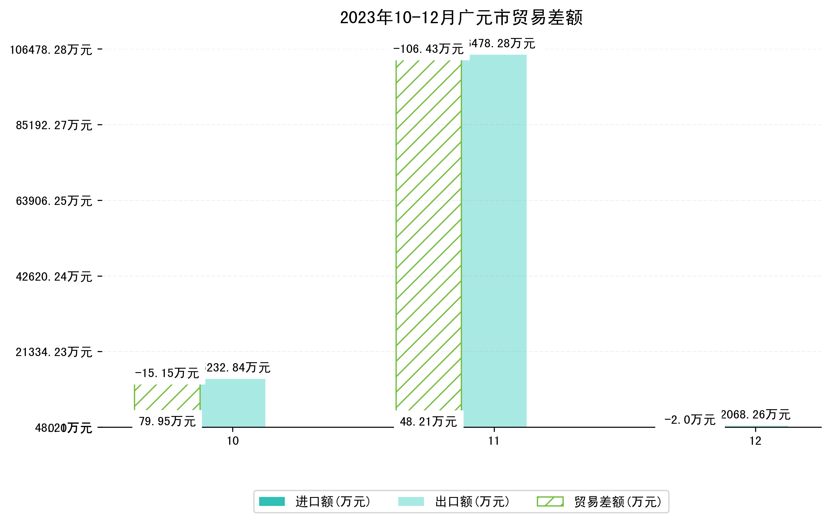 一、2023年12月广元市单月出口总额及进出口差额统计分析