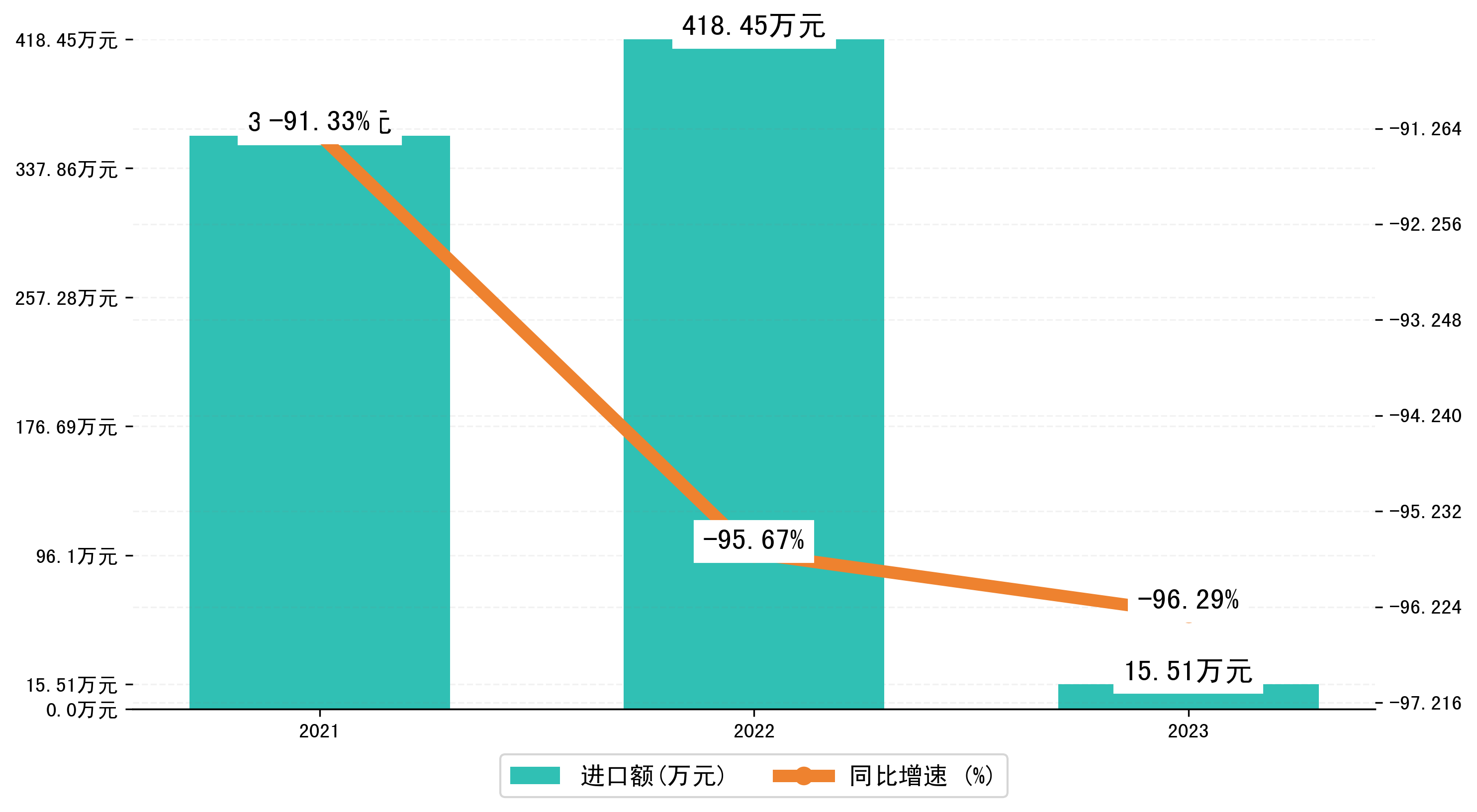 以美元计,2023年1月广元市进口额为2.2267万美元,相比上月减少了247.015万美元;相比上年同期减少了63.437万美元,同比减少-96.60%。