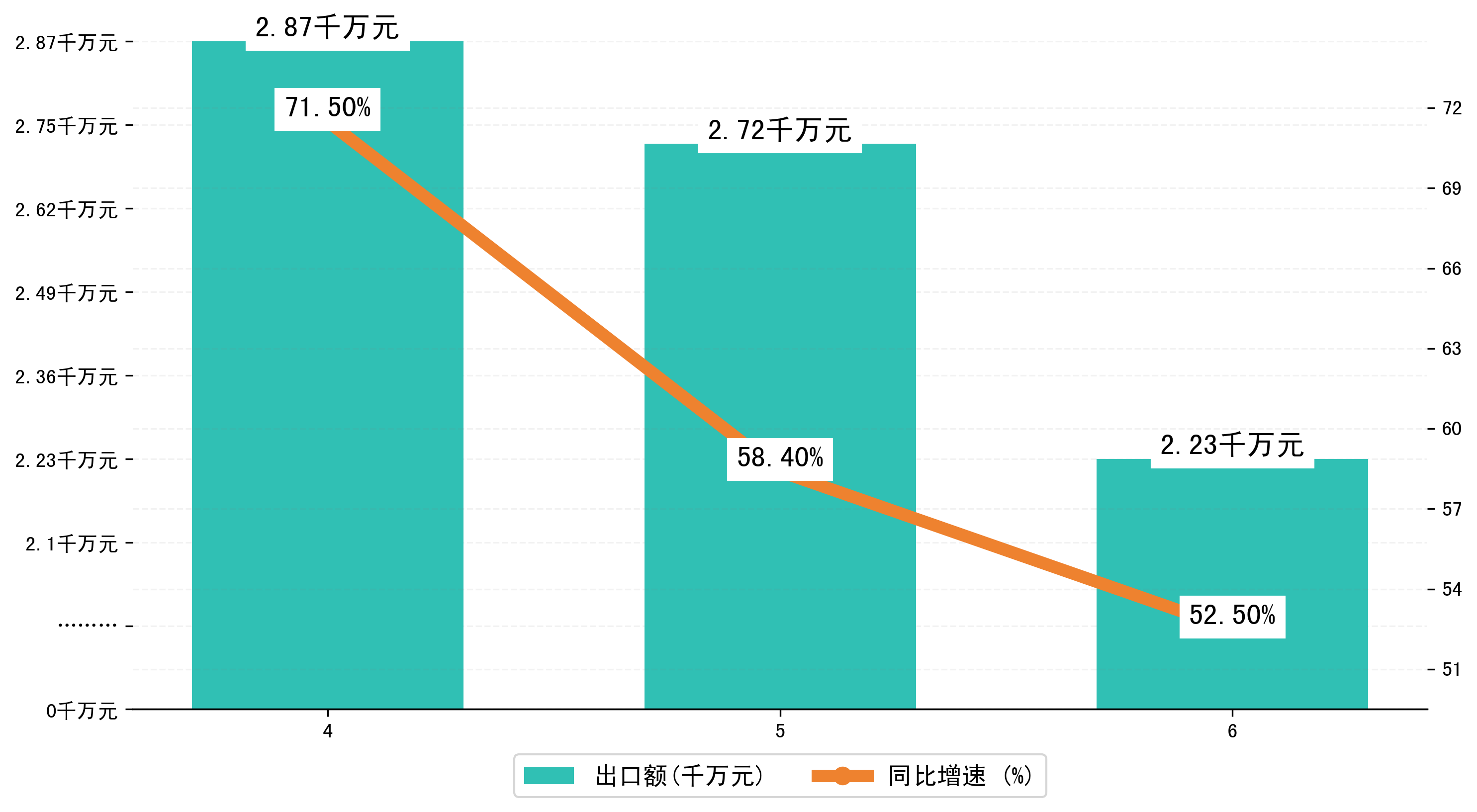 以人民币计,2023年6月广元市出口额为2231.4819万元,相比上月减少了484.9071万元;相比上年同期减少了7836.6843万元,同比增加了52.50%。