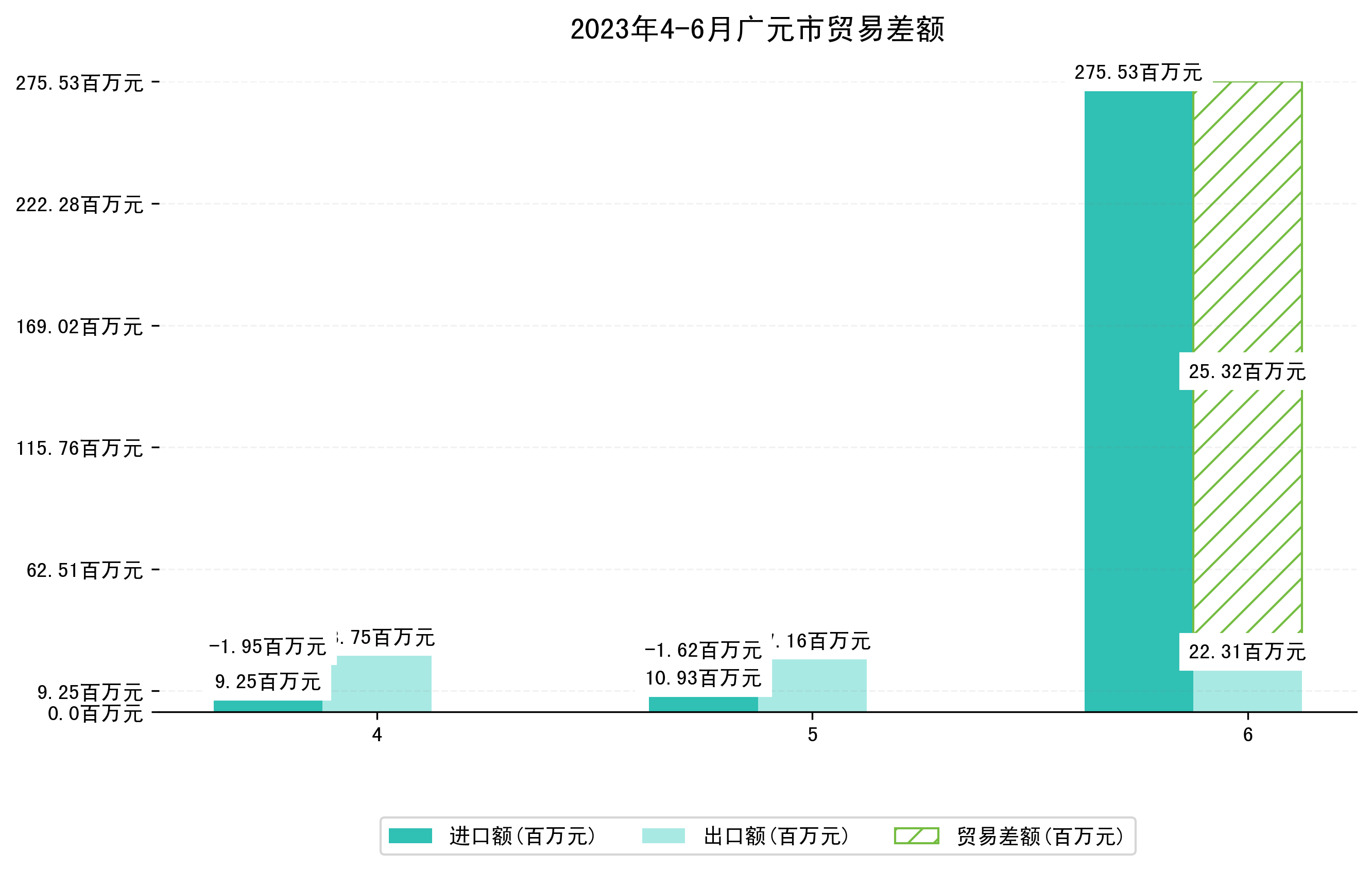 一、2023年6月广元市单月出口总额及进出口差额统计分析