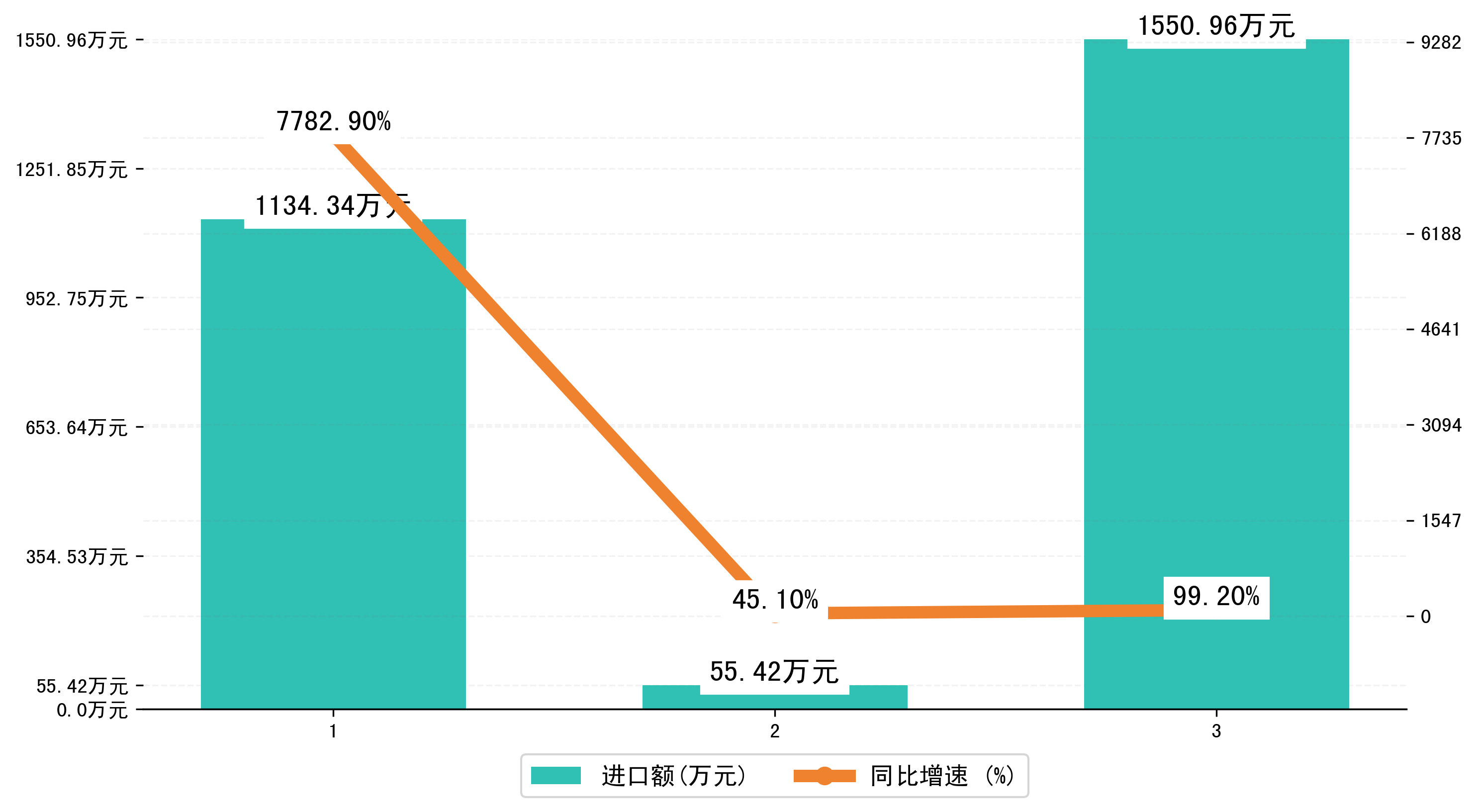 以人民币计,2025年1-3月广元市进口额为2740.7193万元,相比上年同期增加了1364.7194万元,同比增加了99.20%。