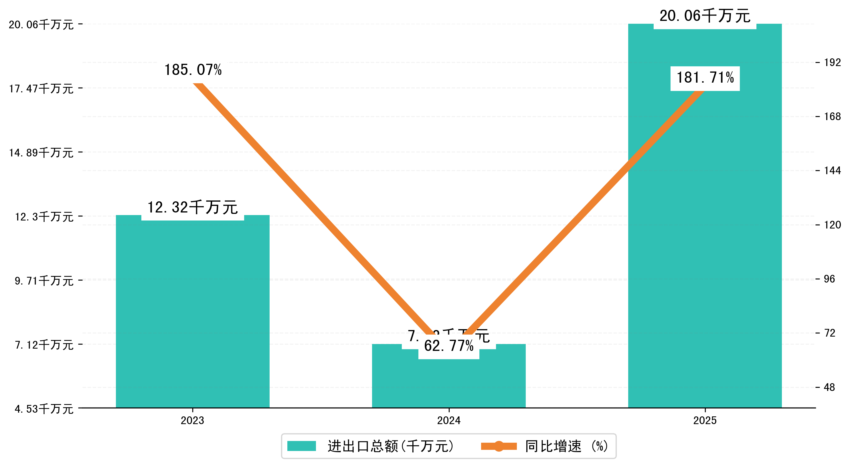 以人民币计,2025年1-3月广元市贸易差额为1,4580,0061万元(贸易顺差),相比上年同期增加了1,0210,5806万元,同比增加233.68%。