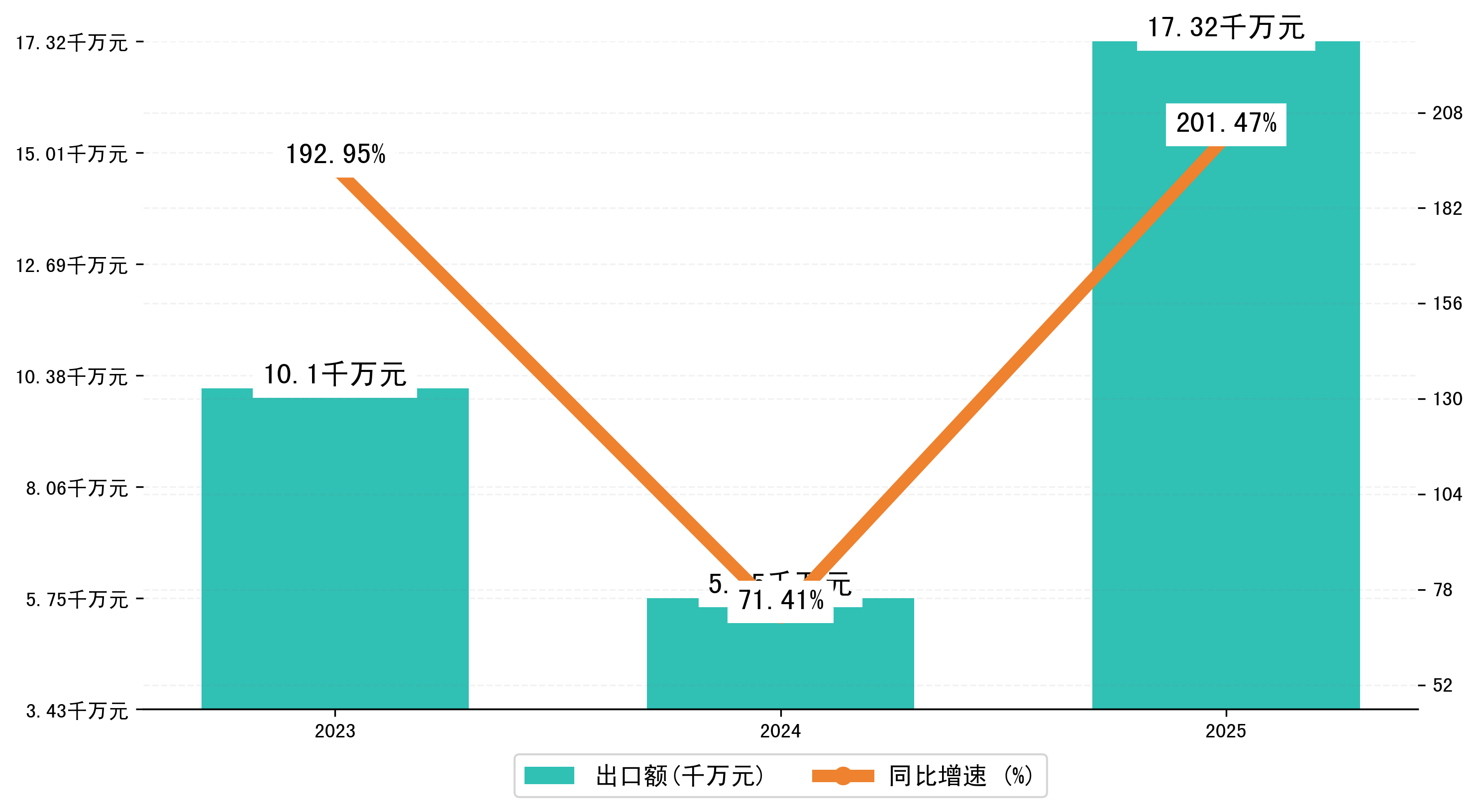 以人民币计,2025年1-3月广元市出口额为1,7320.7254万元,相比上年同期增加了1,1575.3万元,同比增加了201.50%。