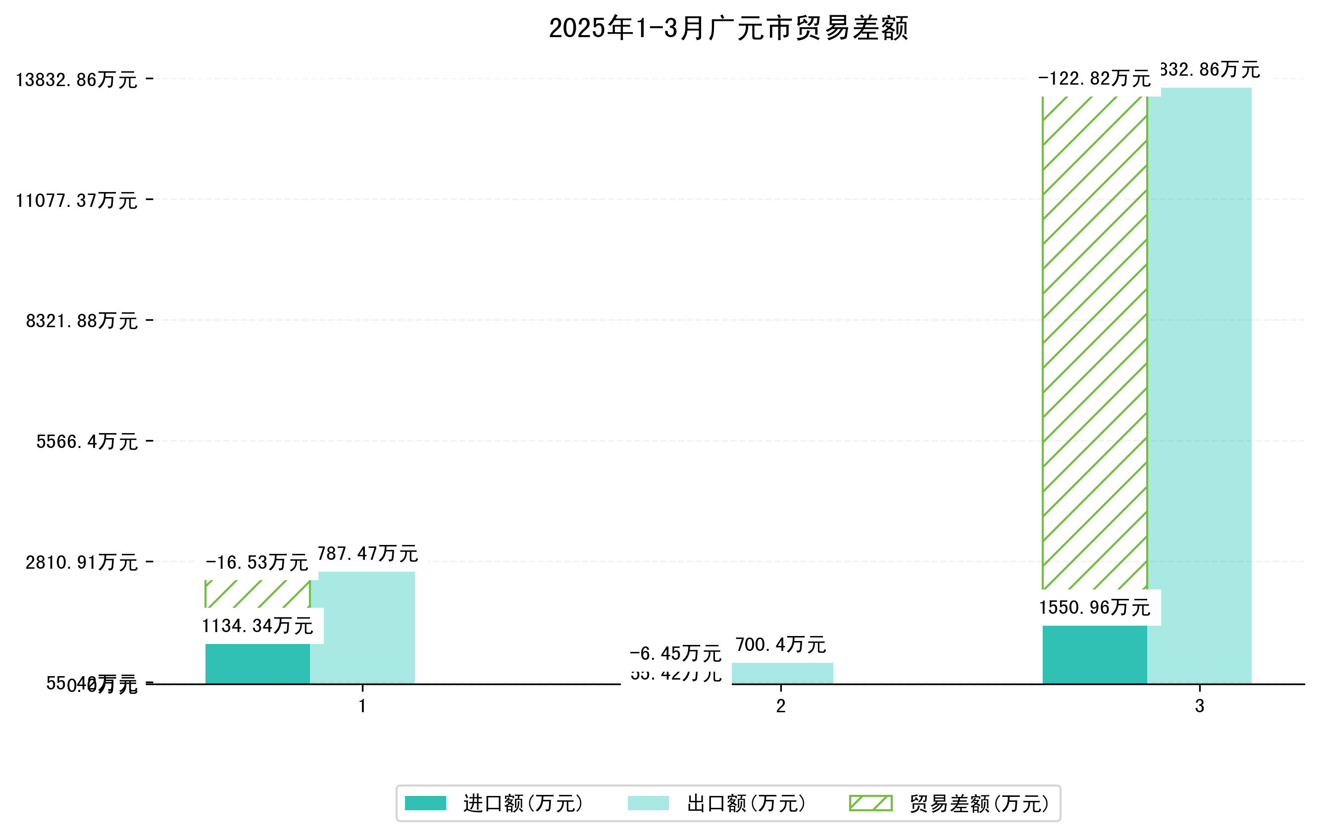 一、2025年3月广元市单月出口总额及进出口差额统计分析