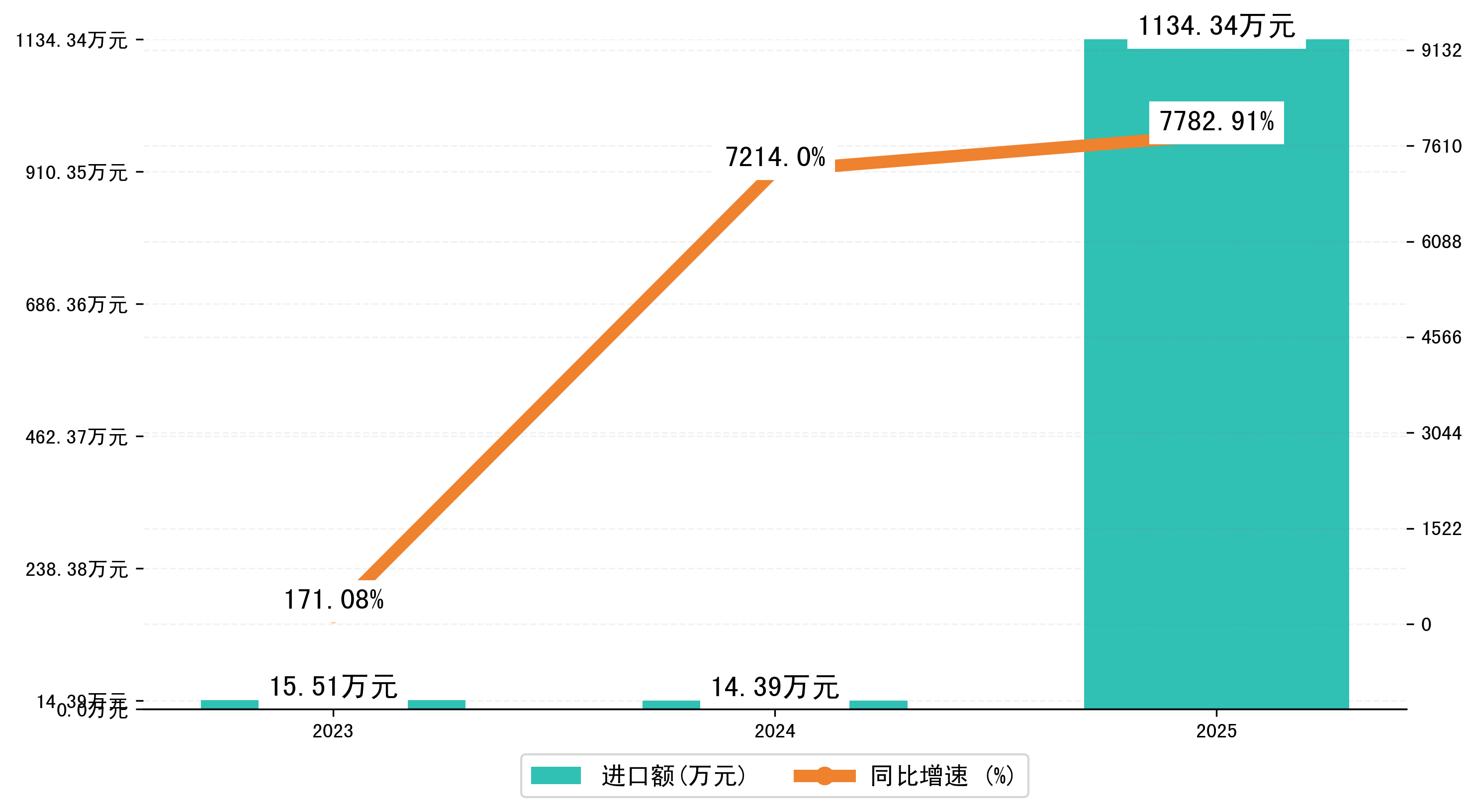 以人民币计,2025年1月广元市进口额为1134.3354万元,相比上月增加了759.9192万元;相比上年同期增加了1119.9456万元,同比增加了7782.90%。