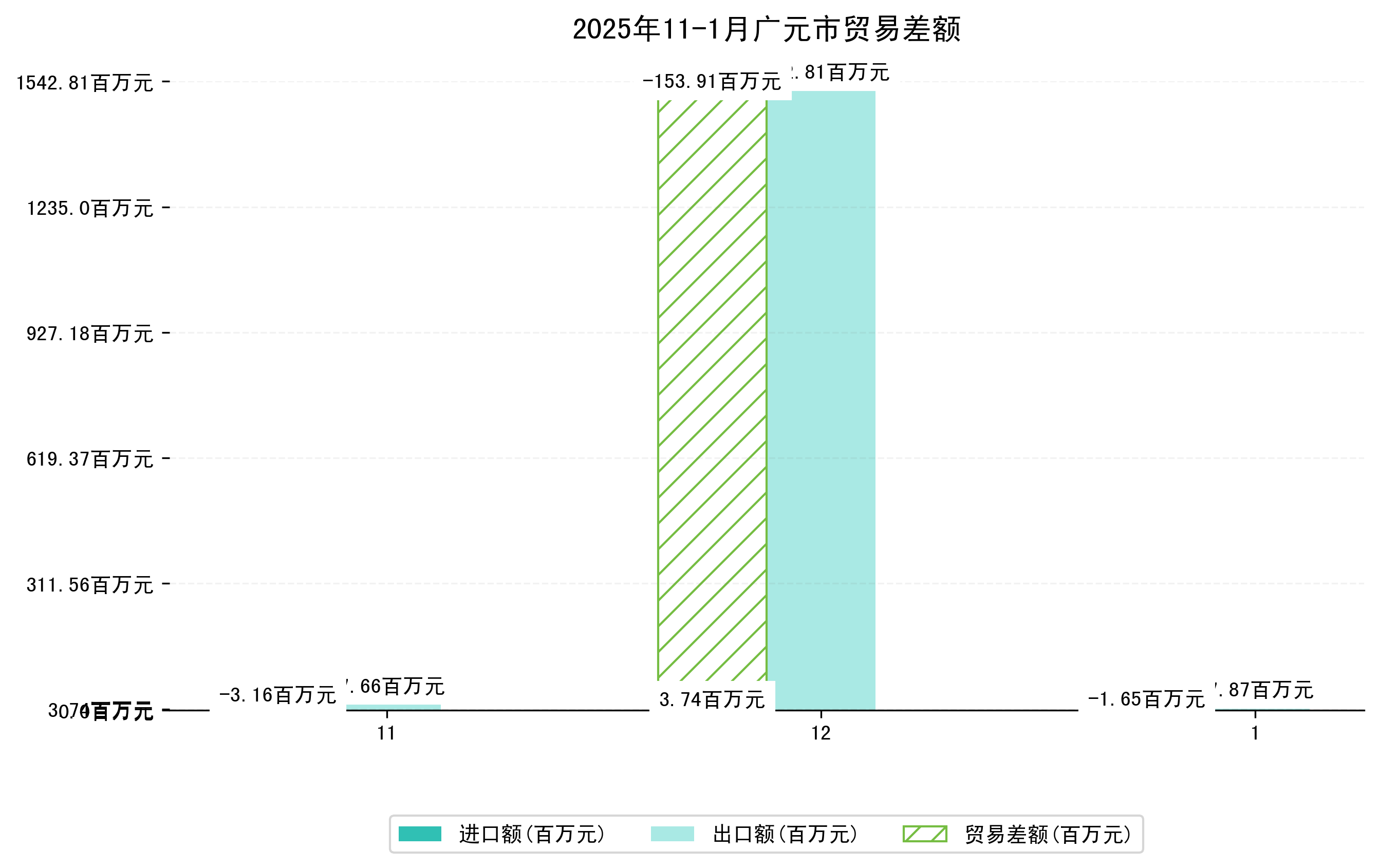 一、2025年1月广元市单月出口总额及进出口差额统计分析