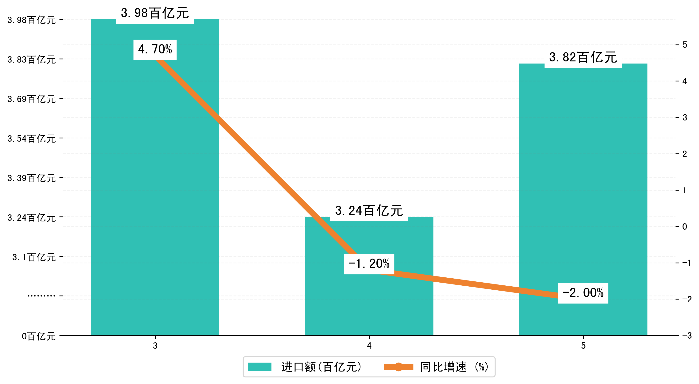 以人民币计,2023年5月广州市进口额为381,6148.5956万元,相比上月增加了57,1981.9535万元;相比上年同期减少了21,5554.3315万元,同比减少了-2.00%。