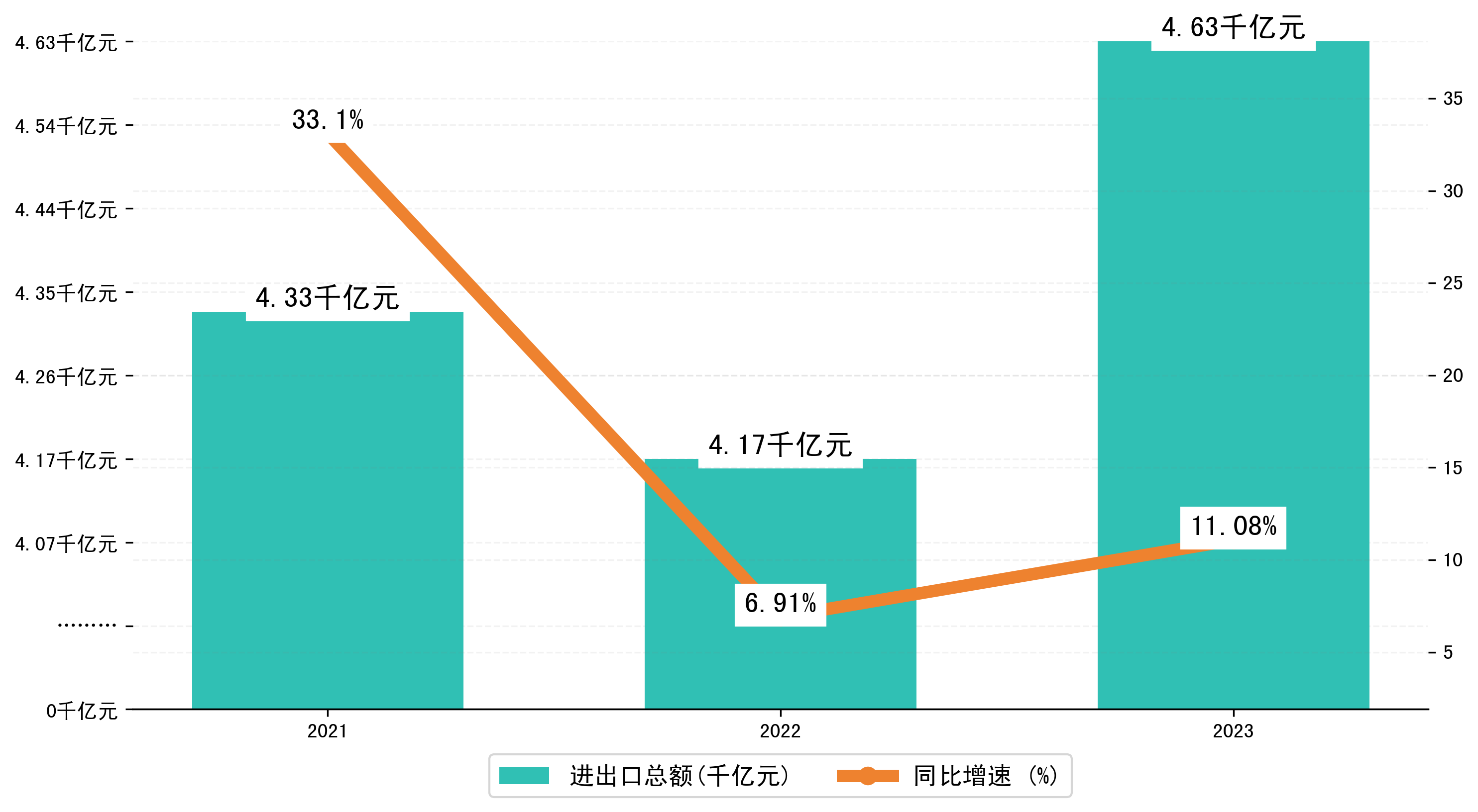 以人民币计,2023年1-5月广州市进出口总额为4628,7652.0477万元,相比上年同期增加了461,7057.6836万元,同比增加了11.00%。