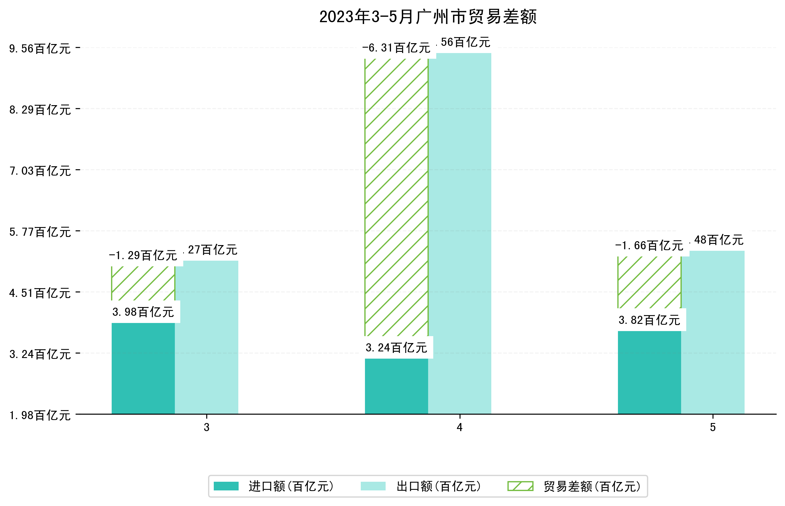 以人民币计,2023年5月广州市贸易差额为165,9707,9197万元(贸易顺差),相比上月减少了465,3276,8743万元,即67,8260,8386万美元;相比上年同期增加了132,0327,2006万元,同比增加389.04%。