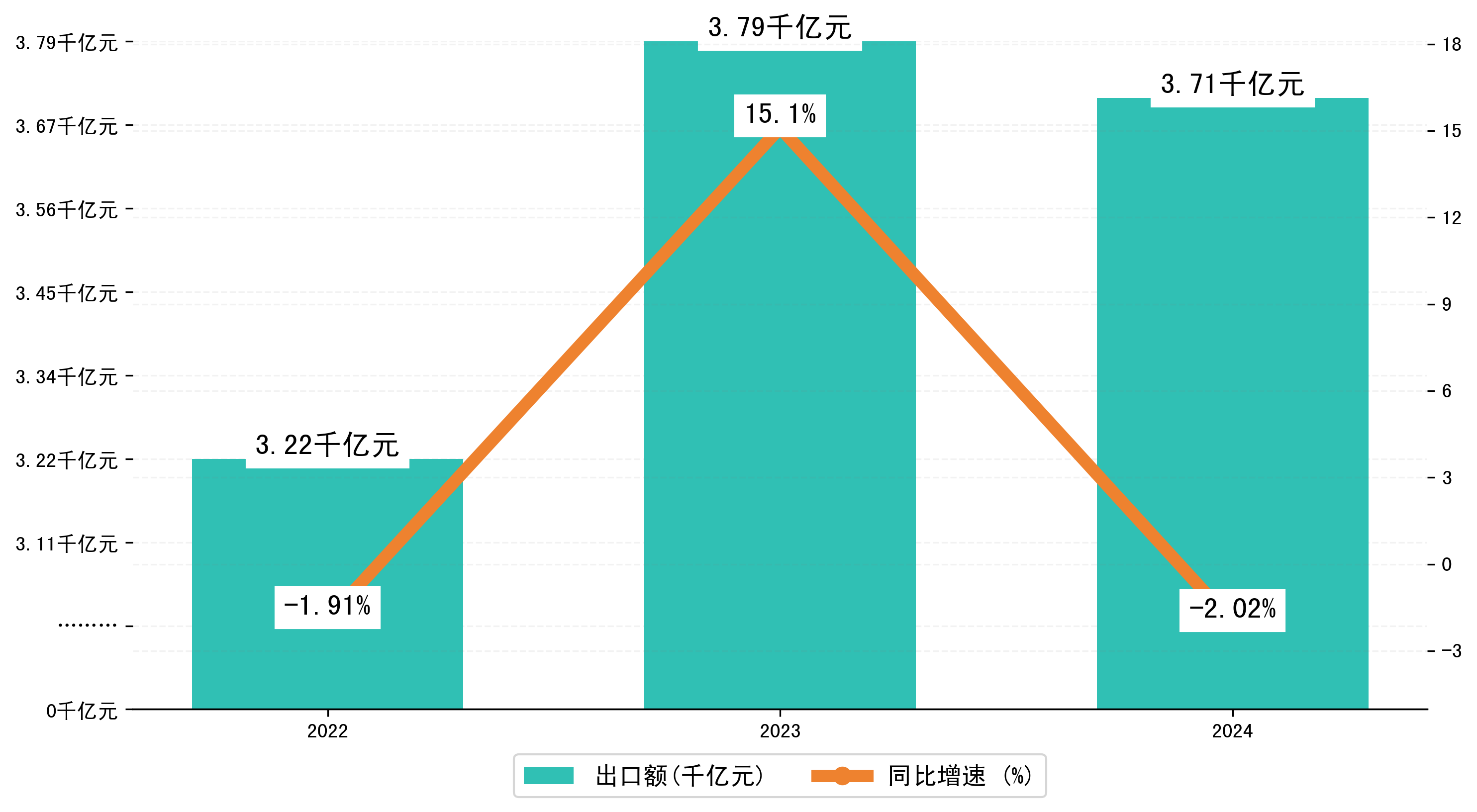 以美元计,2024年7月广州市出口额为86,7014.3286万美元,相比上月增加了1,5782.4503万美元;相比上年同期增加了14,6201.326万美元,同比减少-4.00%。