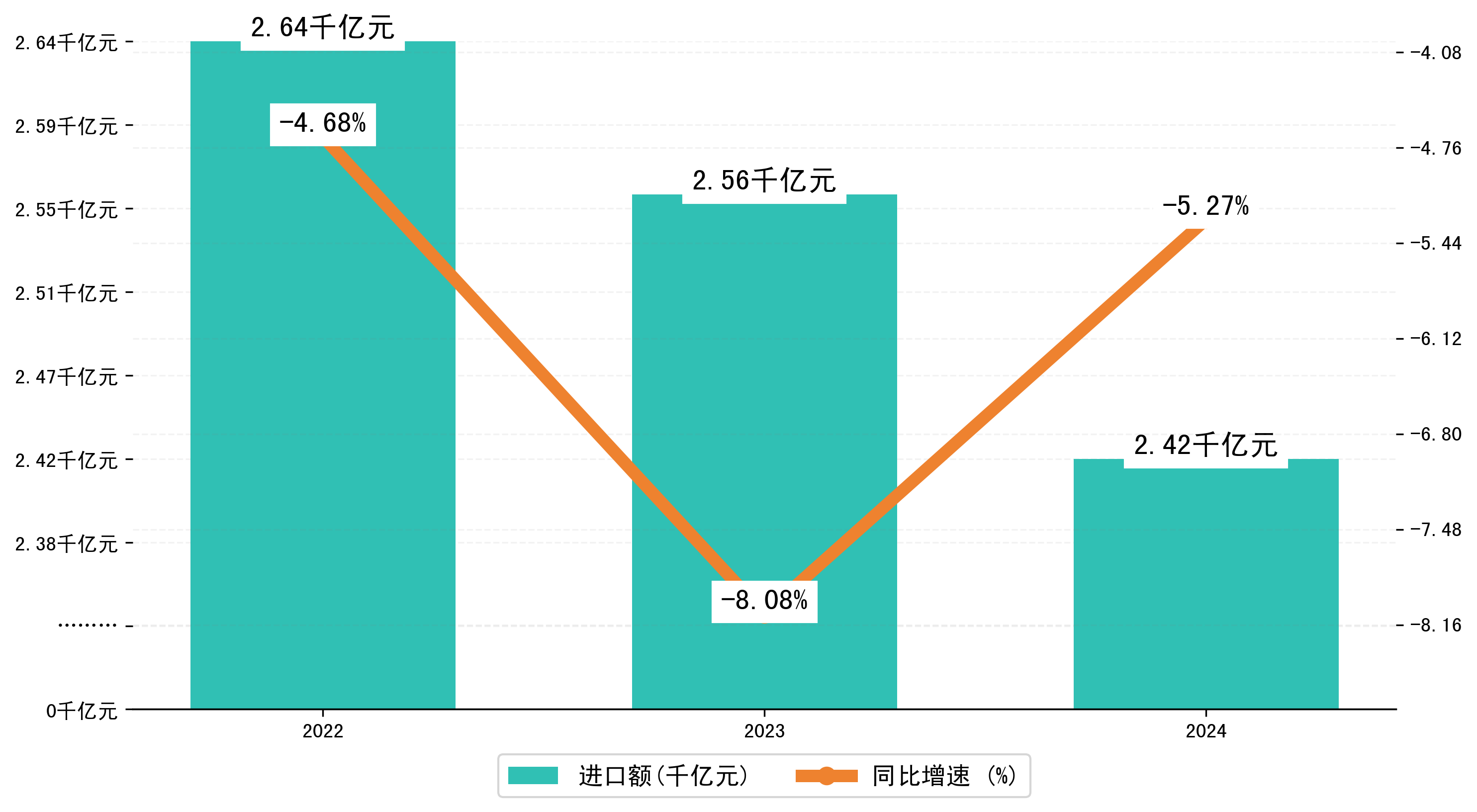 以人民币计,2024年1-7月广州市进口额为2423,0966.073万元,相比上年同期减少了134,7906.0386万元,同比减少了-5.10%。