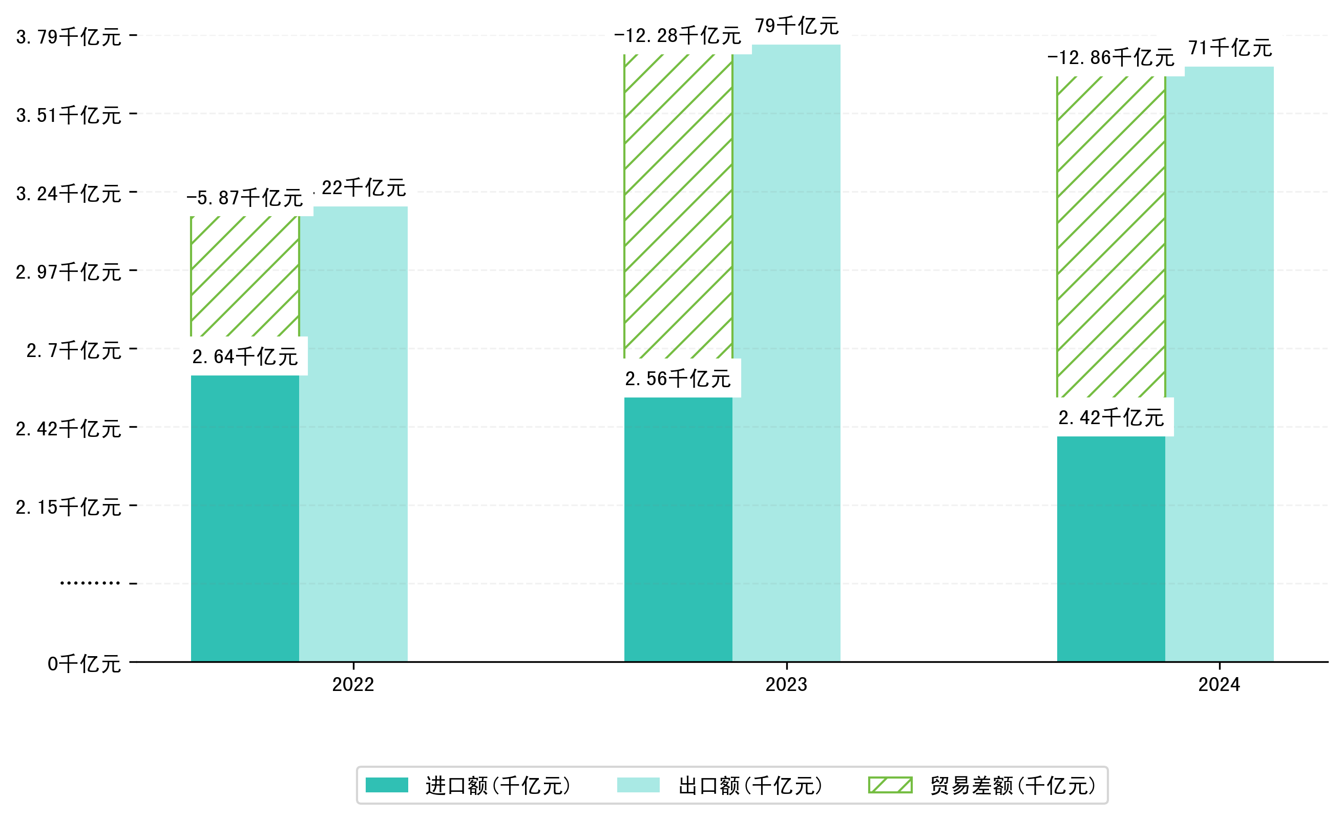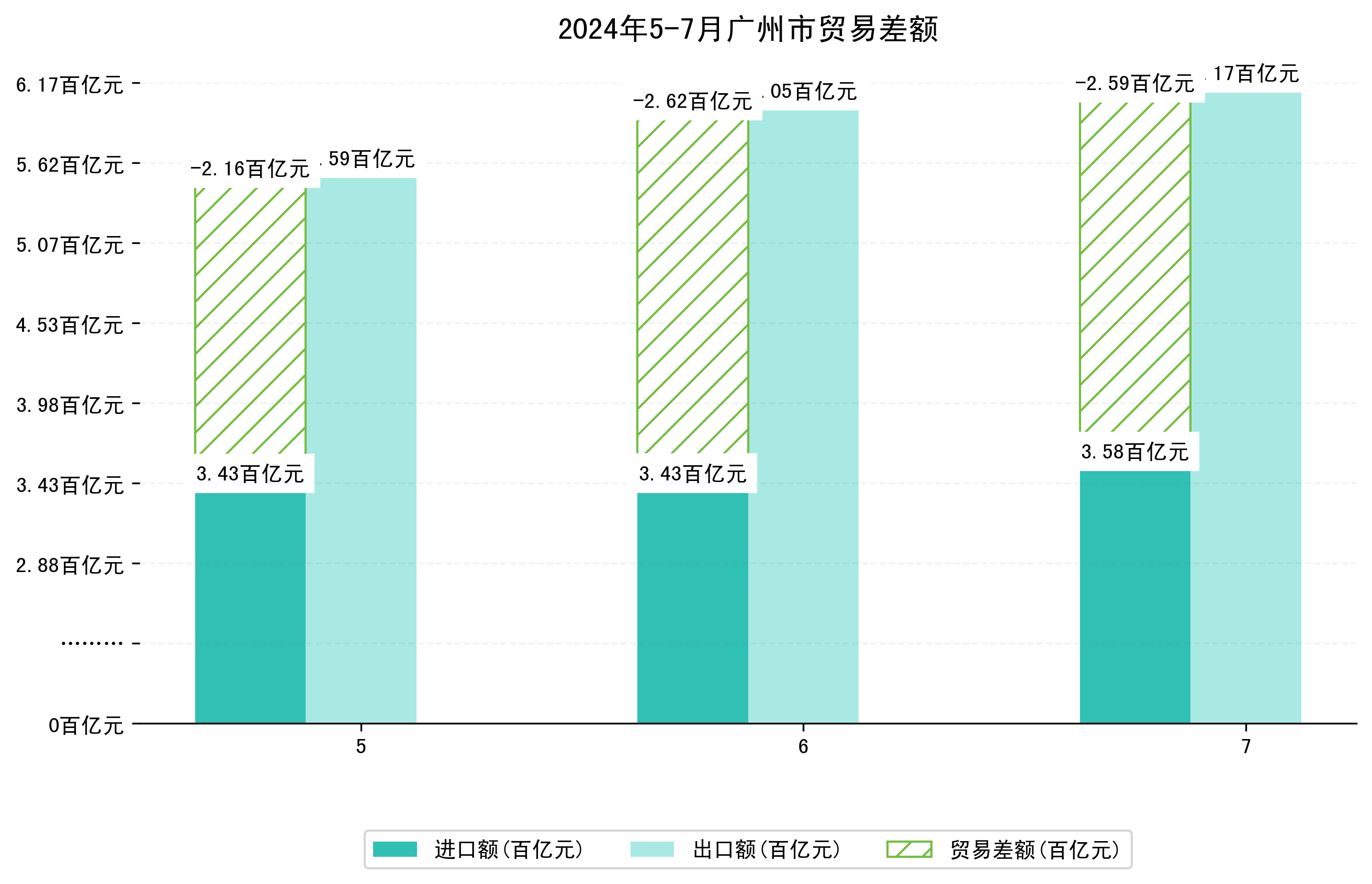 以人民币计,2024年1-7月广州市贸易差额为1286,1770,2649万元(贸易顺差),相比上年同期增加了58,2708,6932万元,同比增加4.75%。