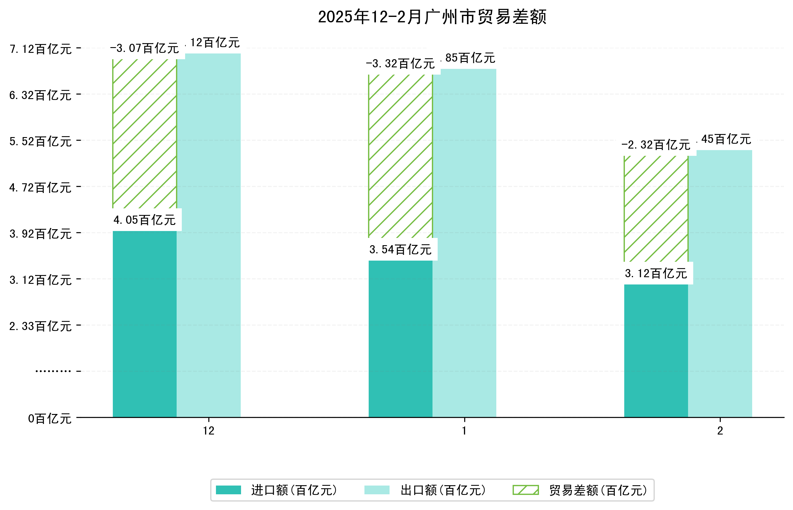 一、2025年2月广州市单月出口总额及进出口差额统计分析