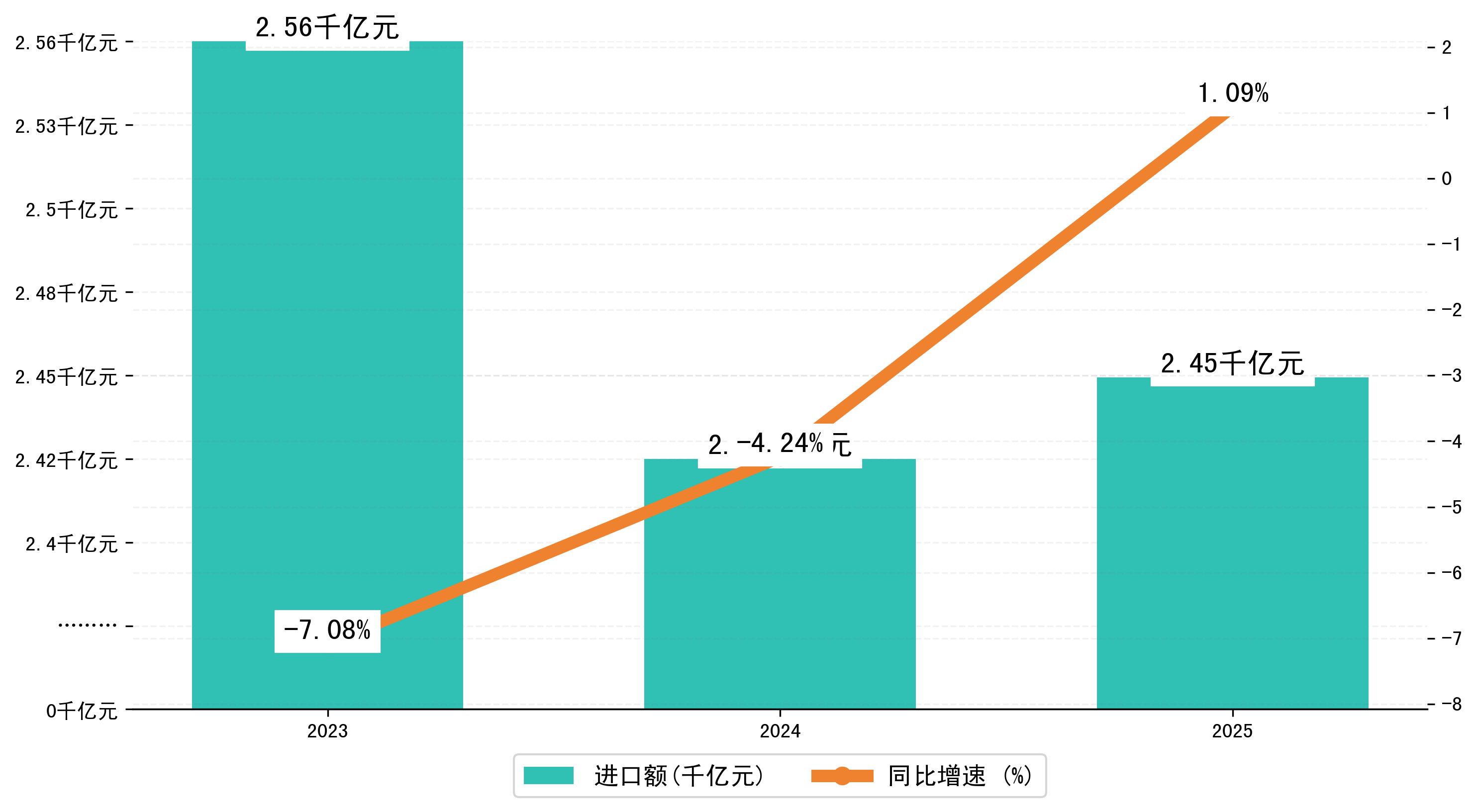 以人民币计,2025年1-7月广州市进口额为2449,4318.4045万元,相比上年同期增加了26,3352.3315万元,同比增加了1.00%。