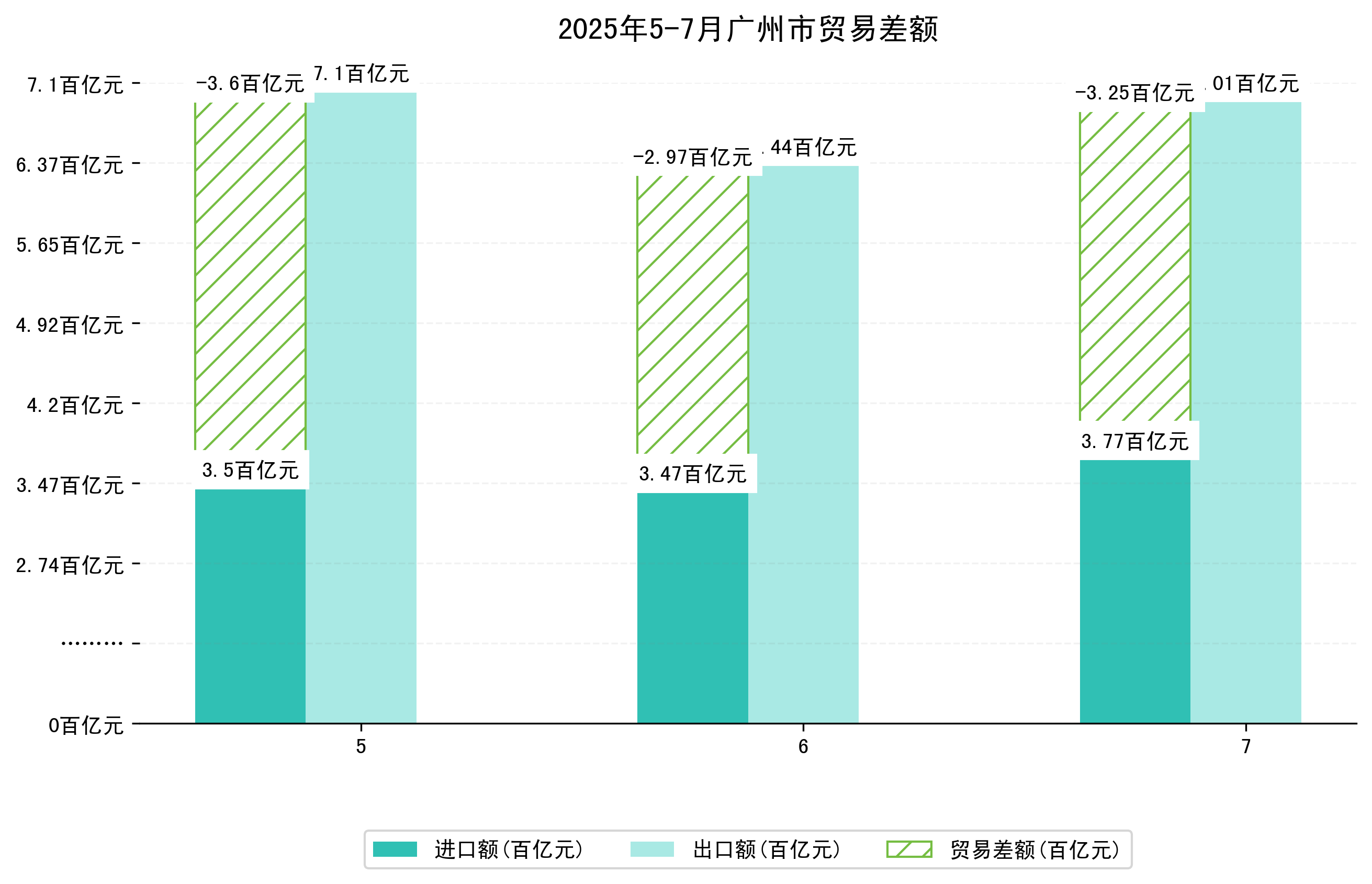 一、2025年7月广州市单月出口总额及进出口差额统计分析