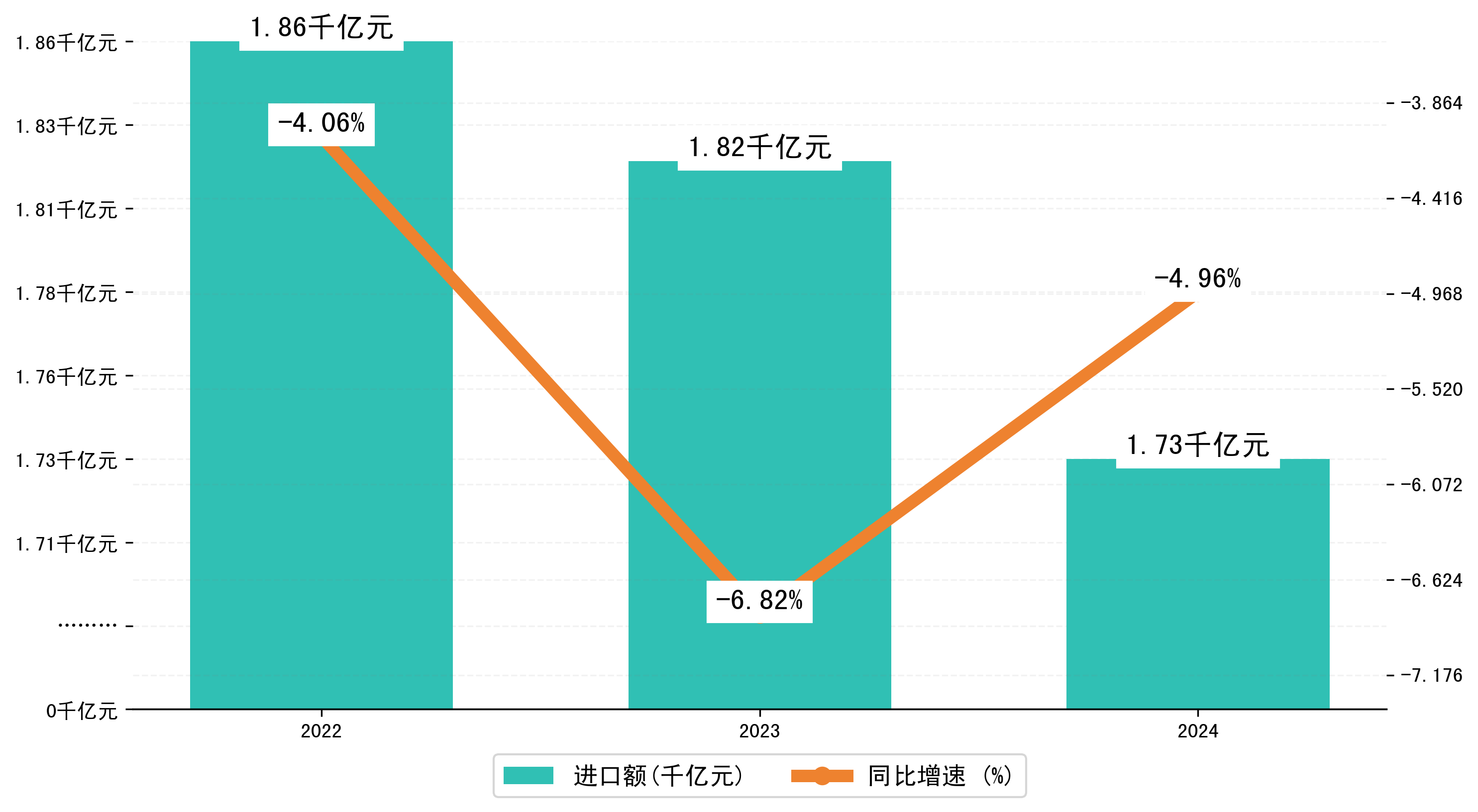 以人民币计,2024年1-5月广州市进口额为1731,9420.1755万元,相比上年同期减少了90,3650.4741万元,同比减少了-4.70%。