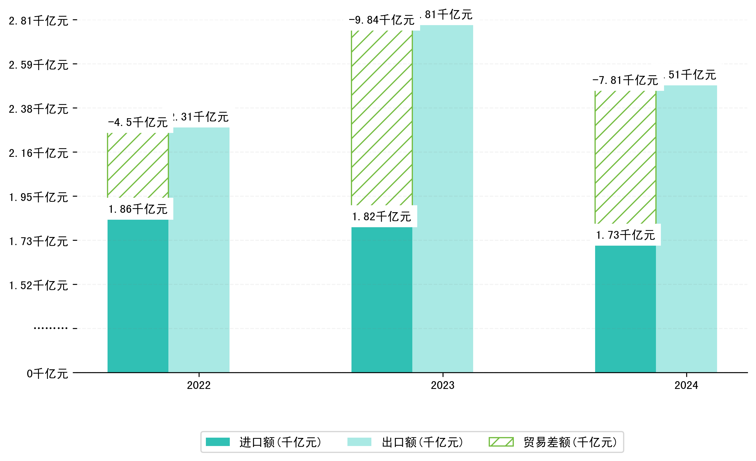 以人民币计,2024年1-5月广州市贸易差额为781,2840,9429万元(贸易顺差),相比上年同期减少了202,8669,8056万元,同比减少-20.61%。