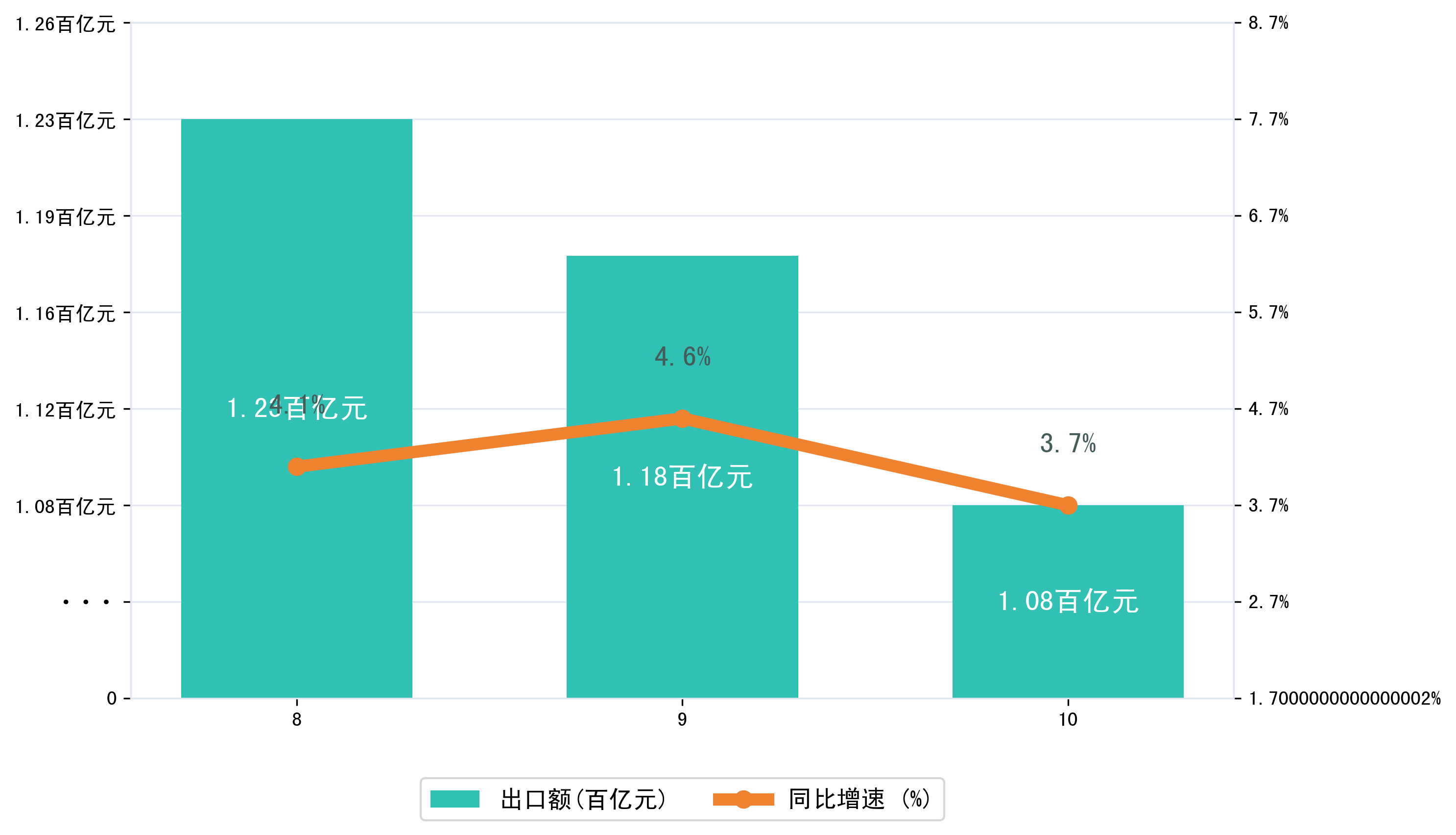 以人民币计,2025年10月湖州市出口额为108,4934.54万元,相比上月减少了9,1473.9108万元;相比上年同期减少了5,7878.8891万元,同比增加了3.70%。