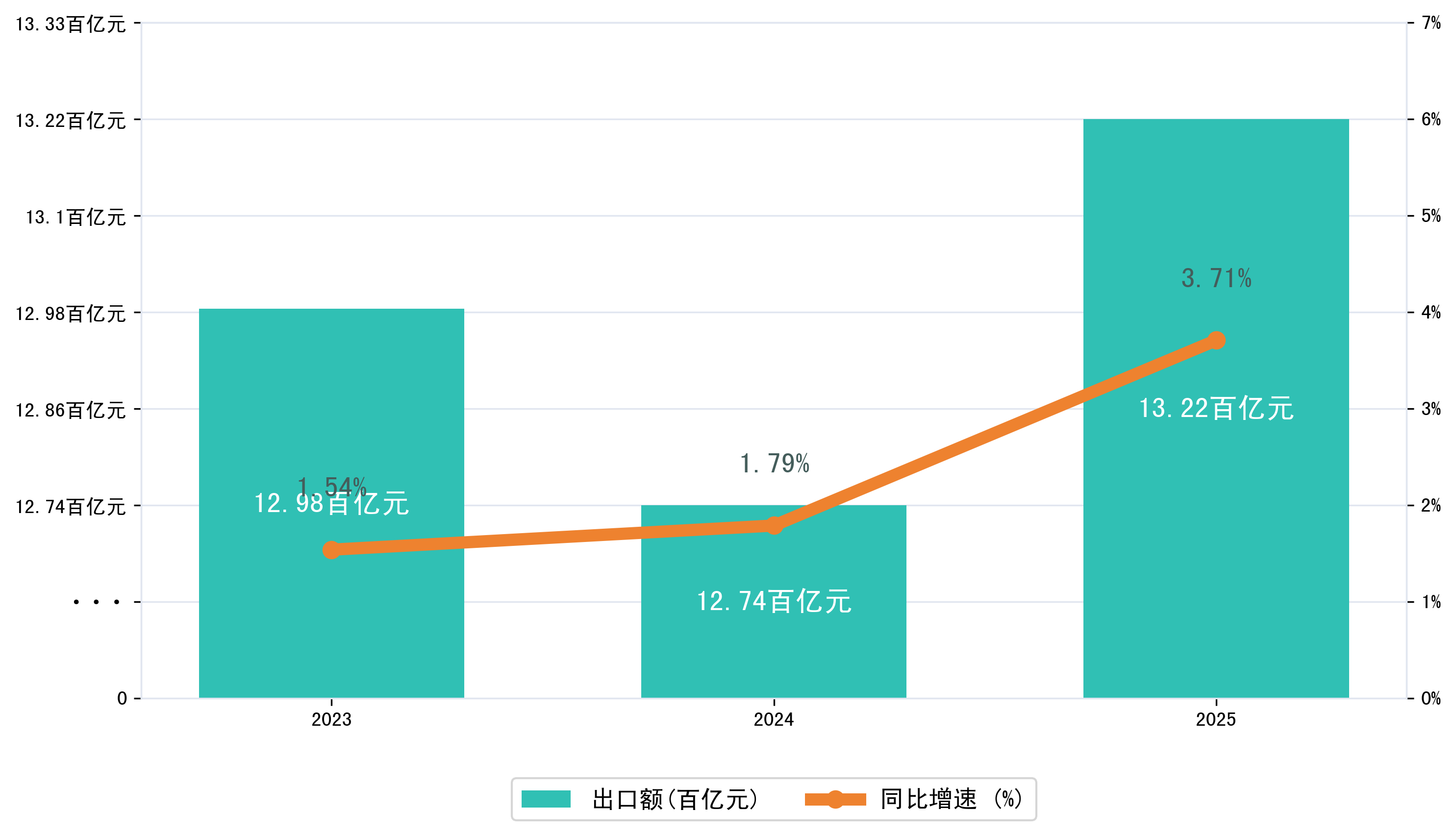 以人民币计,2025年1-10月湖州市出口额为1321,5539.3557万元,相比上年同期增加了47,3255.3034万元,同比增加了3.70%。