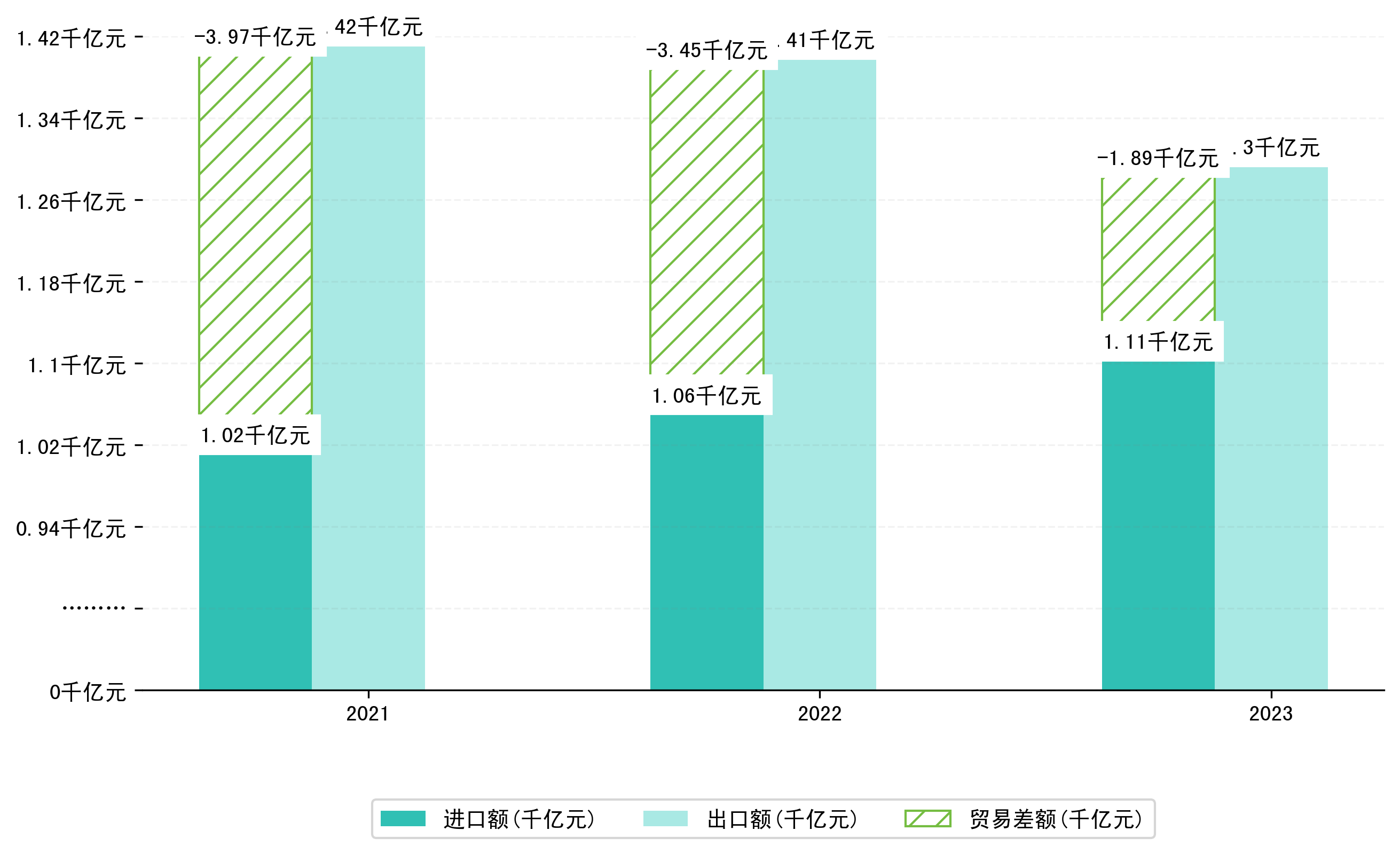 以美元计,2023年1-3月广州市贸易差额为27,3931,1178万美元(贸易顺差),相比上年同期减少了26,8712,5950万美元,同比减少-49.52%。