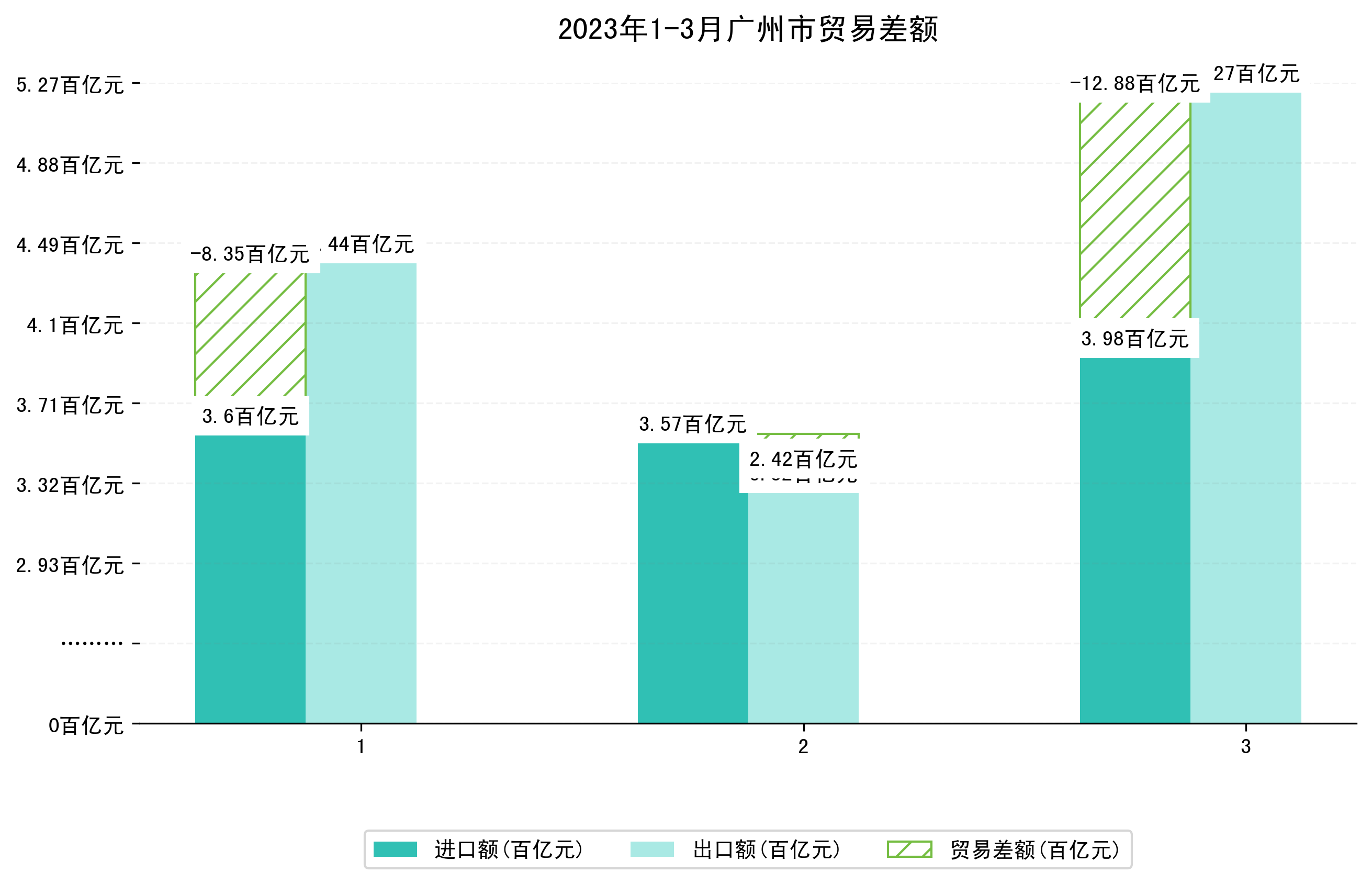 一、2023年3月广州市单月出口总额及进出口差额统计分析