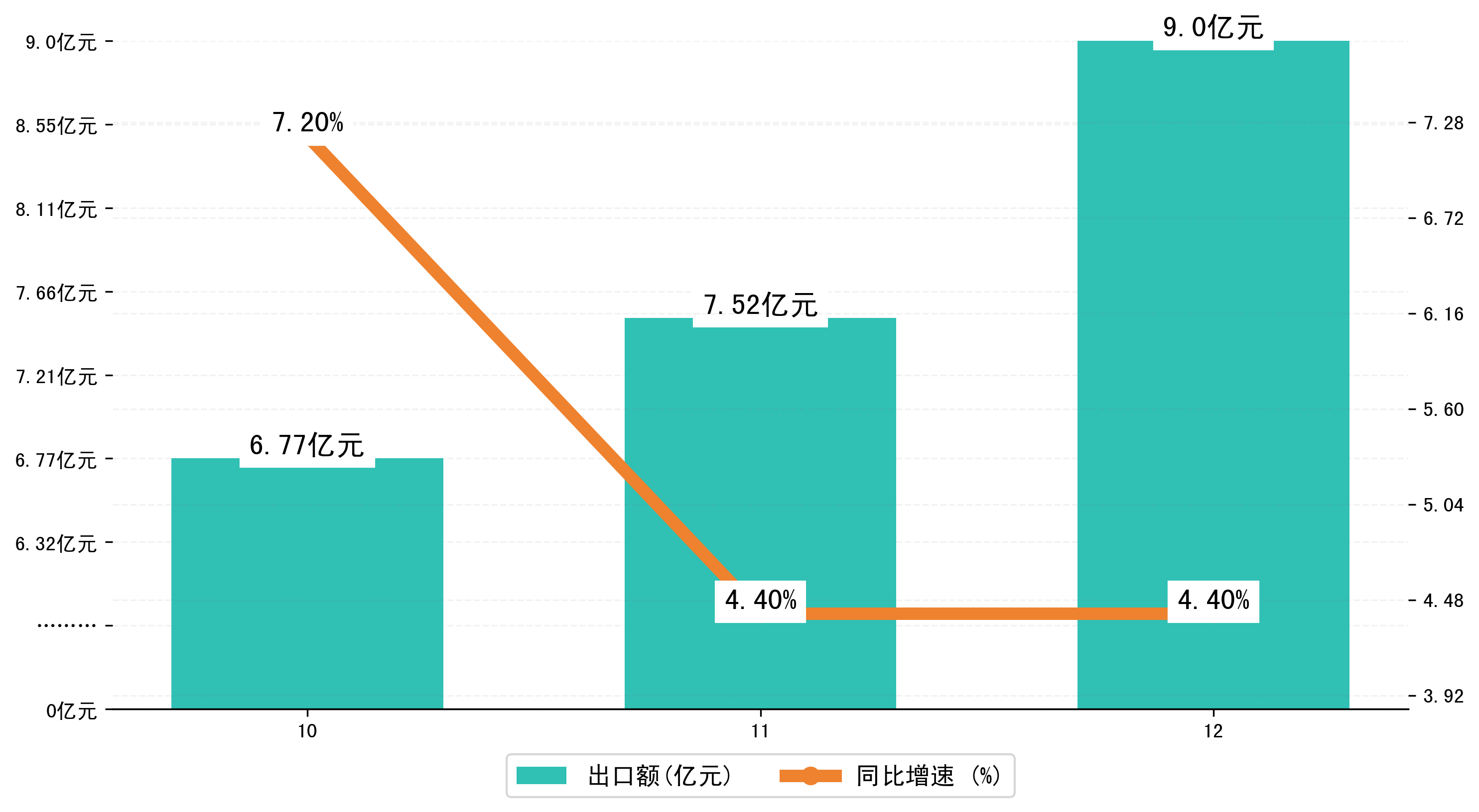 以人民币计,2023年1-12月桂林市出口额为92,3246.6万元,相比上年同期增加了3,9331.1834万元,同比增加了4.40%。