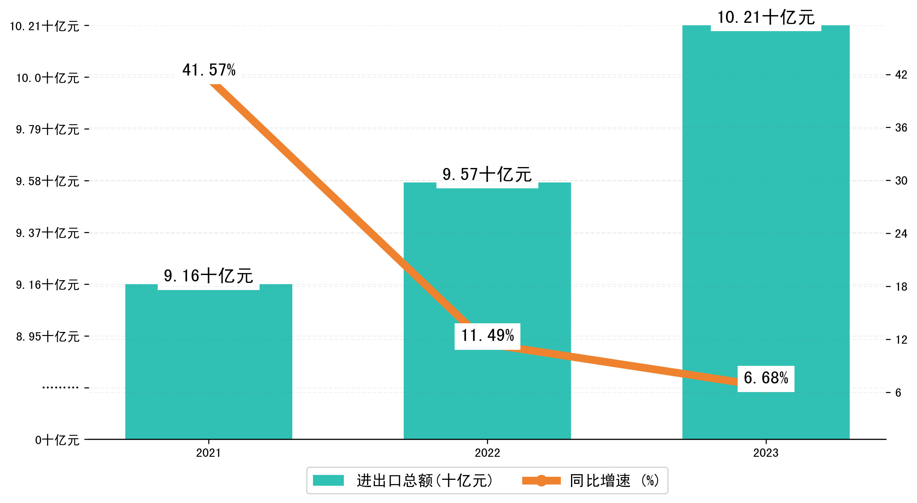以人民币计,2023年1-12月桂林市进出口总额为102,1373.4022万元,相比上年同期增加了6,3942.9111万元,同比增加了6.70%。
