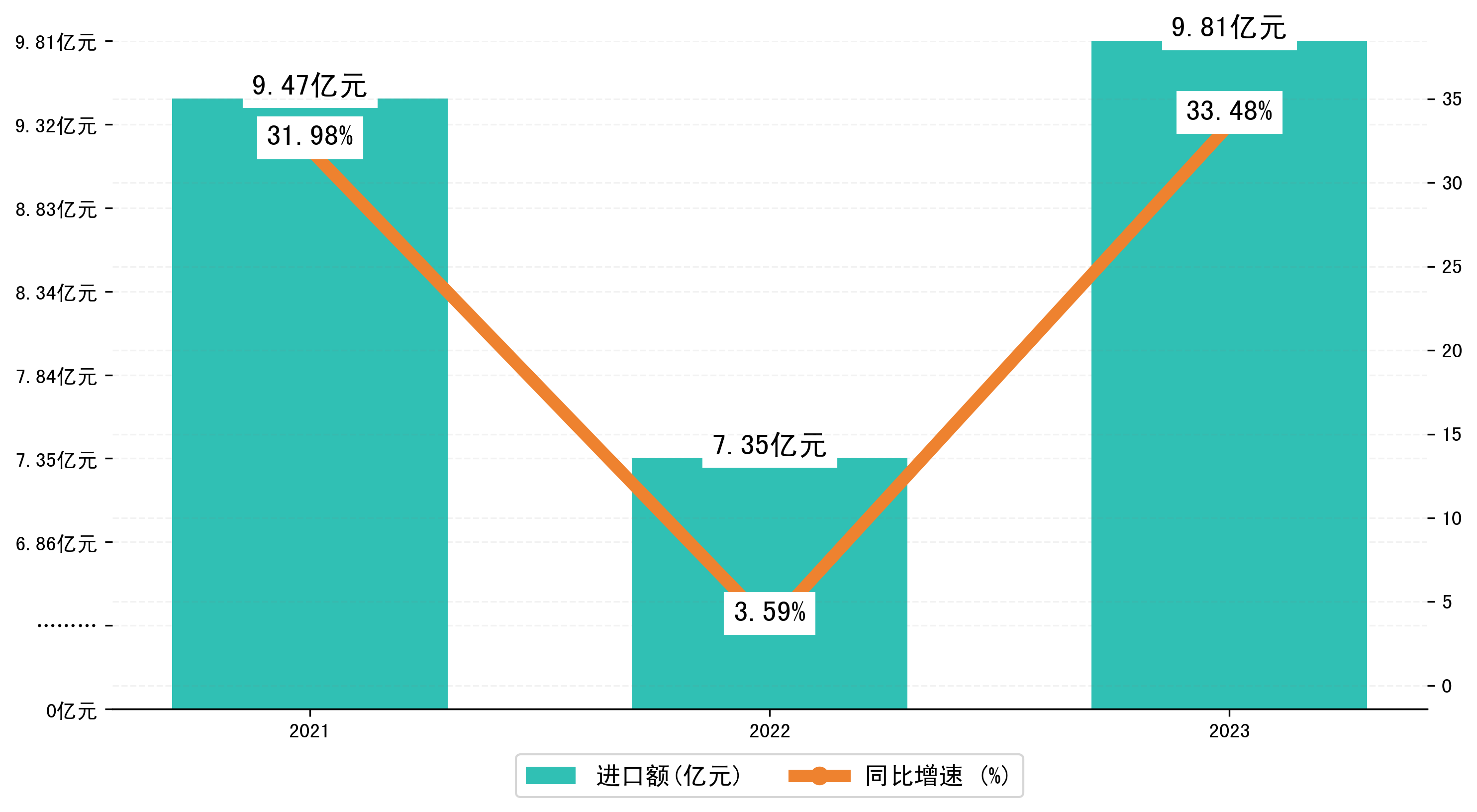 以人民币计,2023年1-12月桂林市进口额为9,8126.8022万元,相比上年同期增加了2,4611.7277万元,同比增加了33.50%。